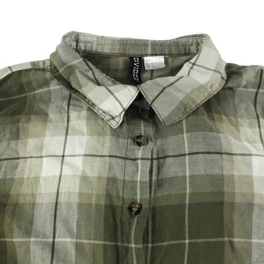 H&M womens S green checked plisse sleeve cotton shirt