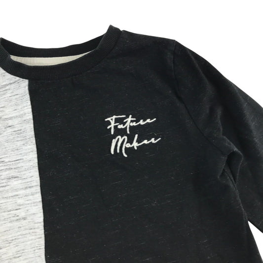F&F t-shirt 5-6 years grey black long sleeve embroidery text