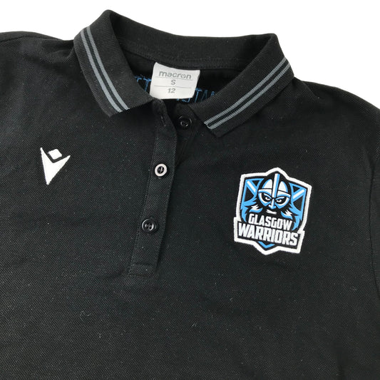 Macron Glasgow Warriors Rugby Polo Shirt Womens Size 12 Black Button Up Neck Short Sleeve Cotton