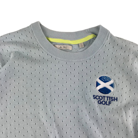 Adidas Scottish Golf Jumper Women size Large Light Blue Long Sleeve Knitted