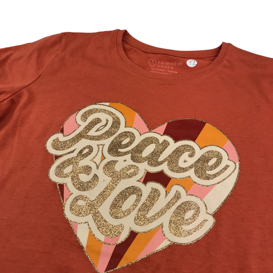 Primark 12-13 years orange peace & love t-shirt