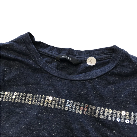 George 8-9 years navy sequin stripes t-shirt