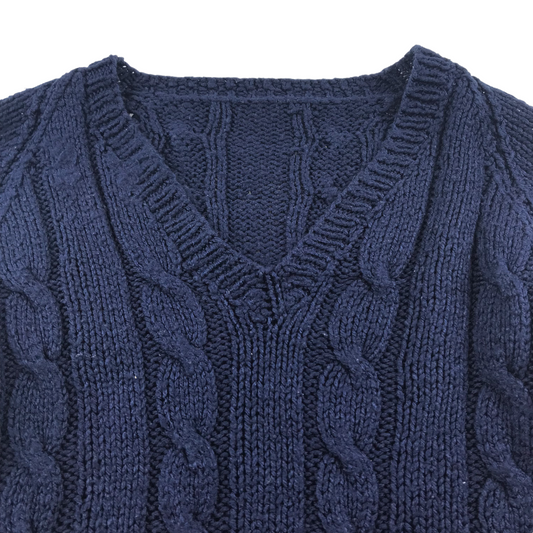 Hand knitted 7-8 years navy cable blue v-neck jumper