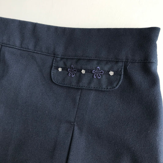 Navy blue floral embroidery school skirt
