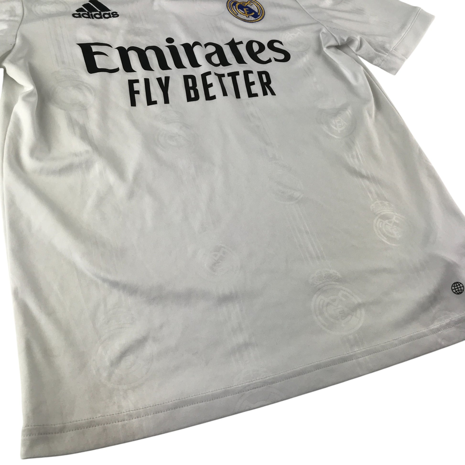 Preloved second hand Adidas Real Madrid 22-23 home football strip 13-14 years white Vini Jr number 20