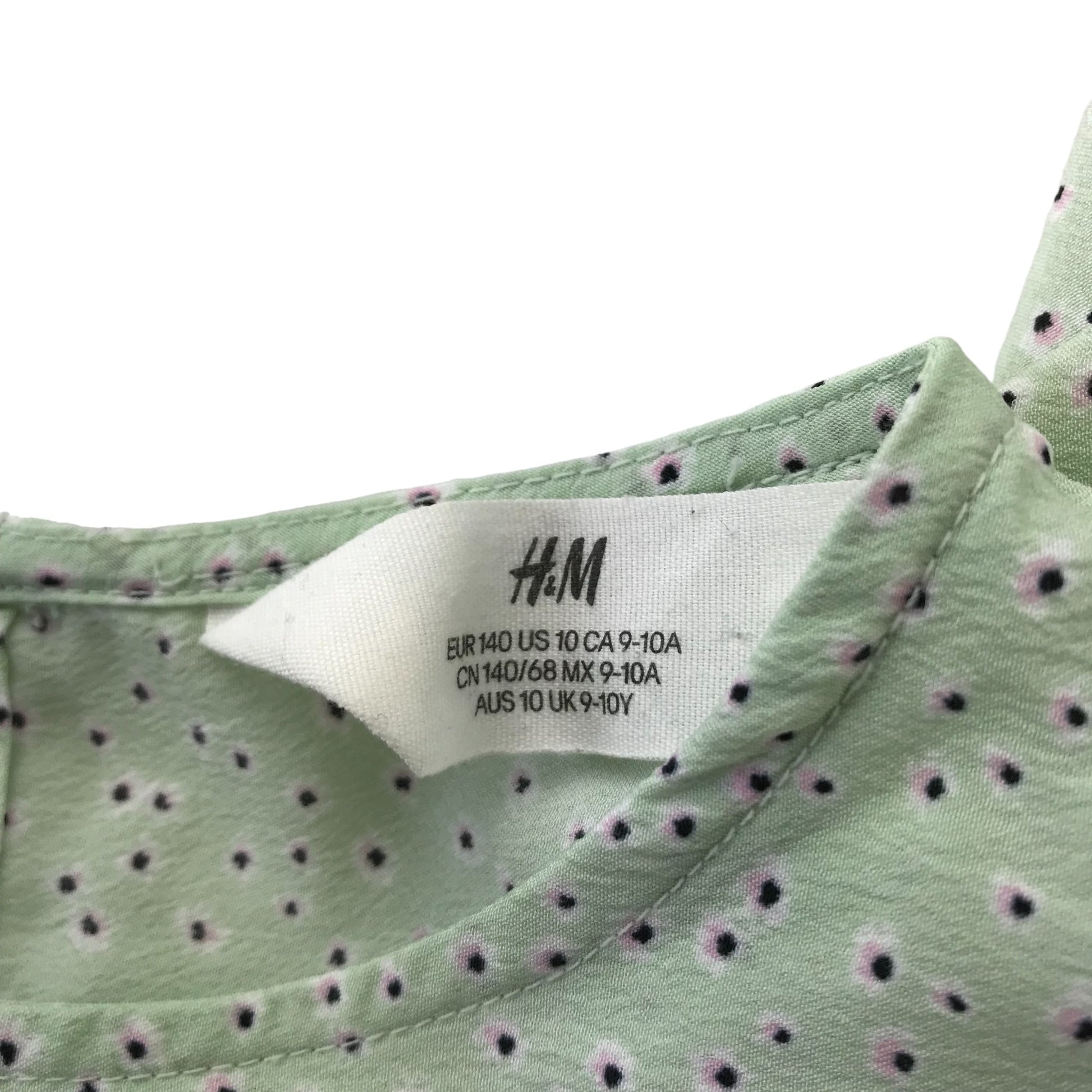 H&M dress 9-10 years light green midi length floral short sleeve layered