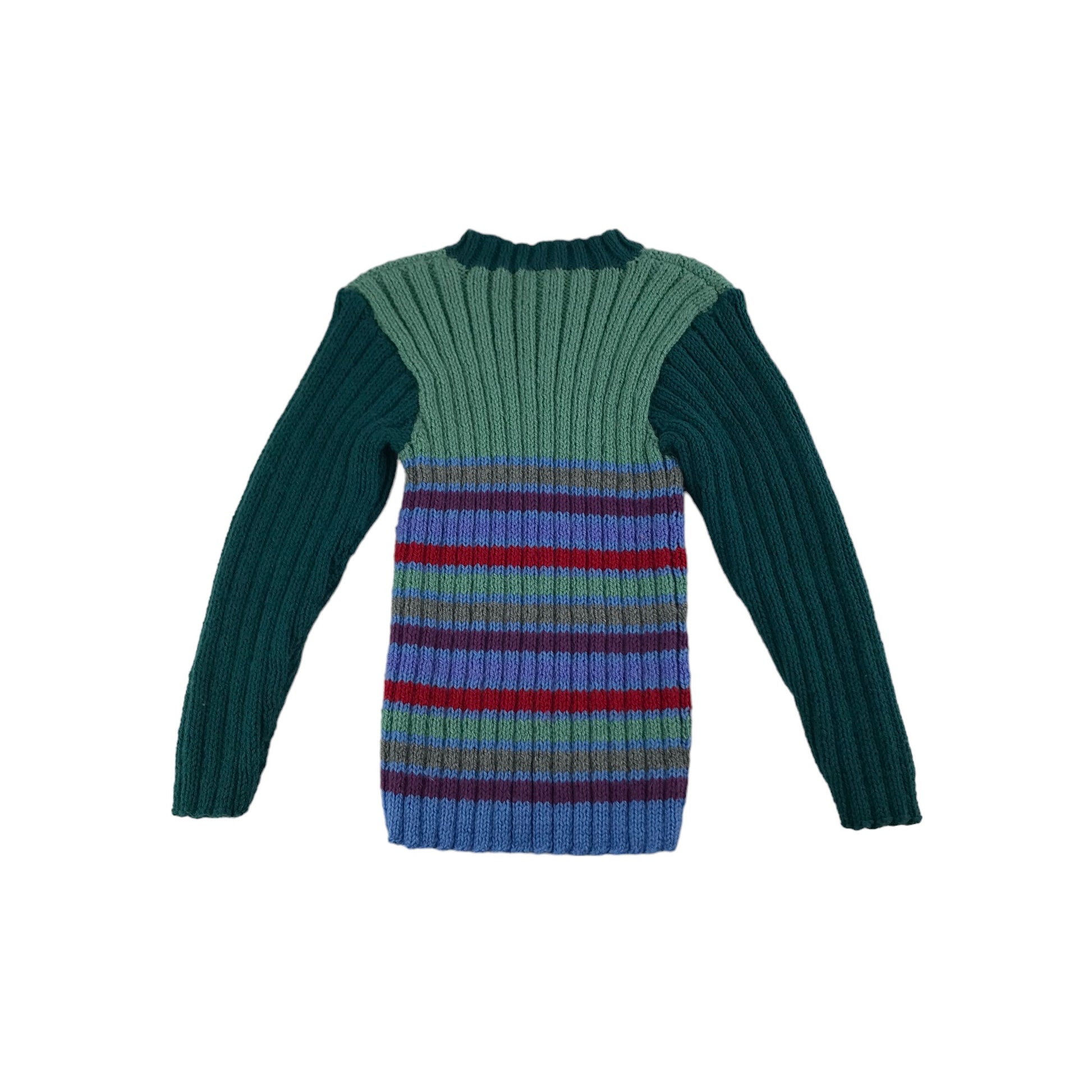 Preloved second-hand Handmade Jumper Age 5-7 Green Stripy Stretchy Knit with Buttons