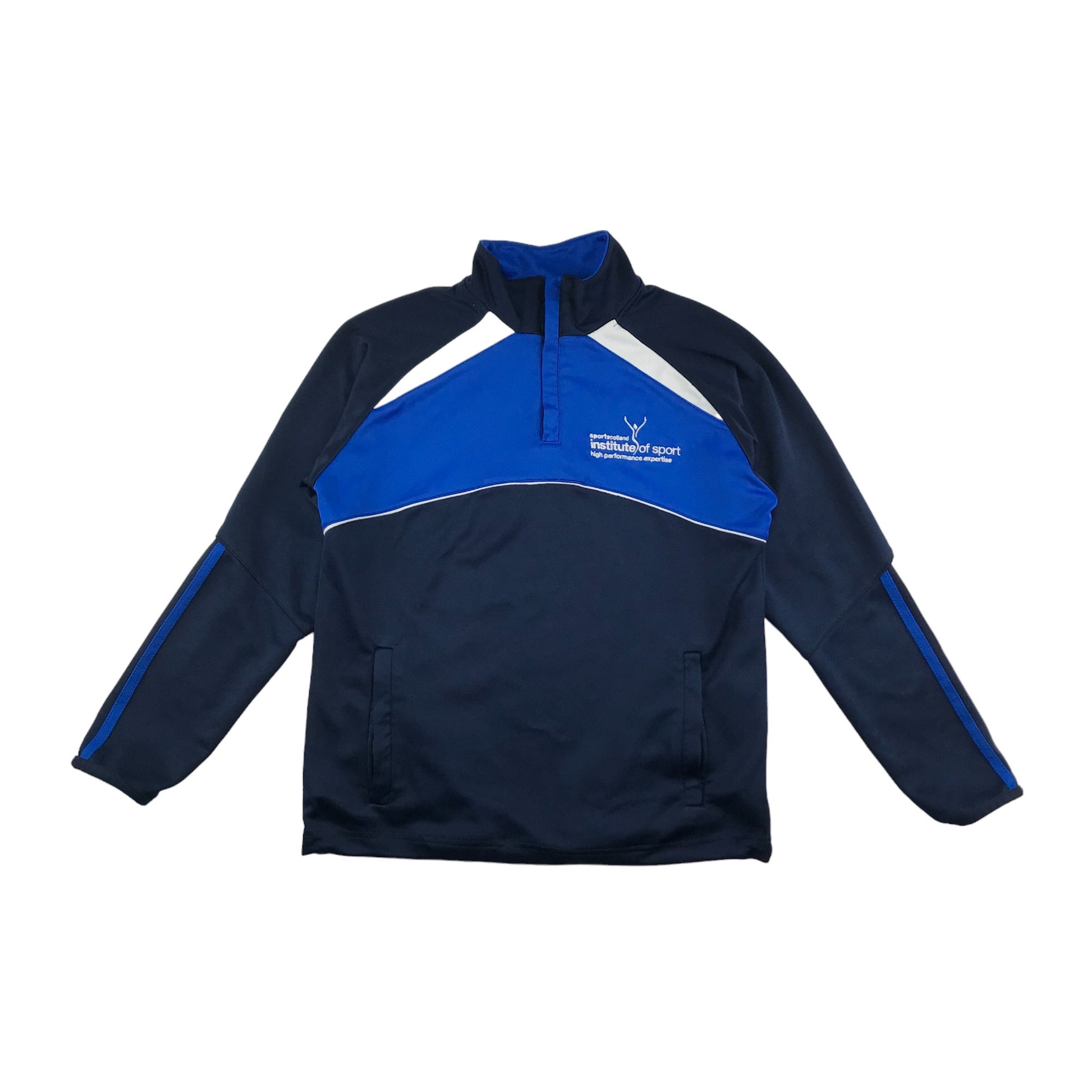 - Description: Casual sporty zip up neck sweater with adjustable hem with draw strings, Sport Scotland Institute of Sport High-performance expertise logo in the front. Sisport.com in the back
