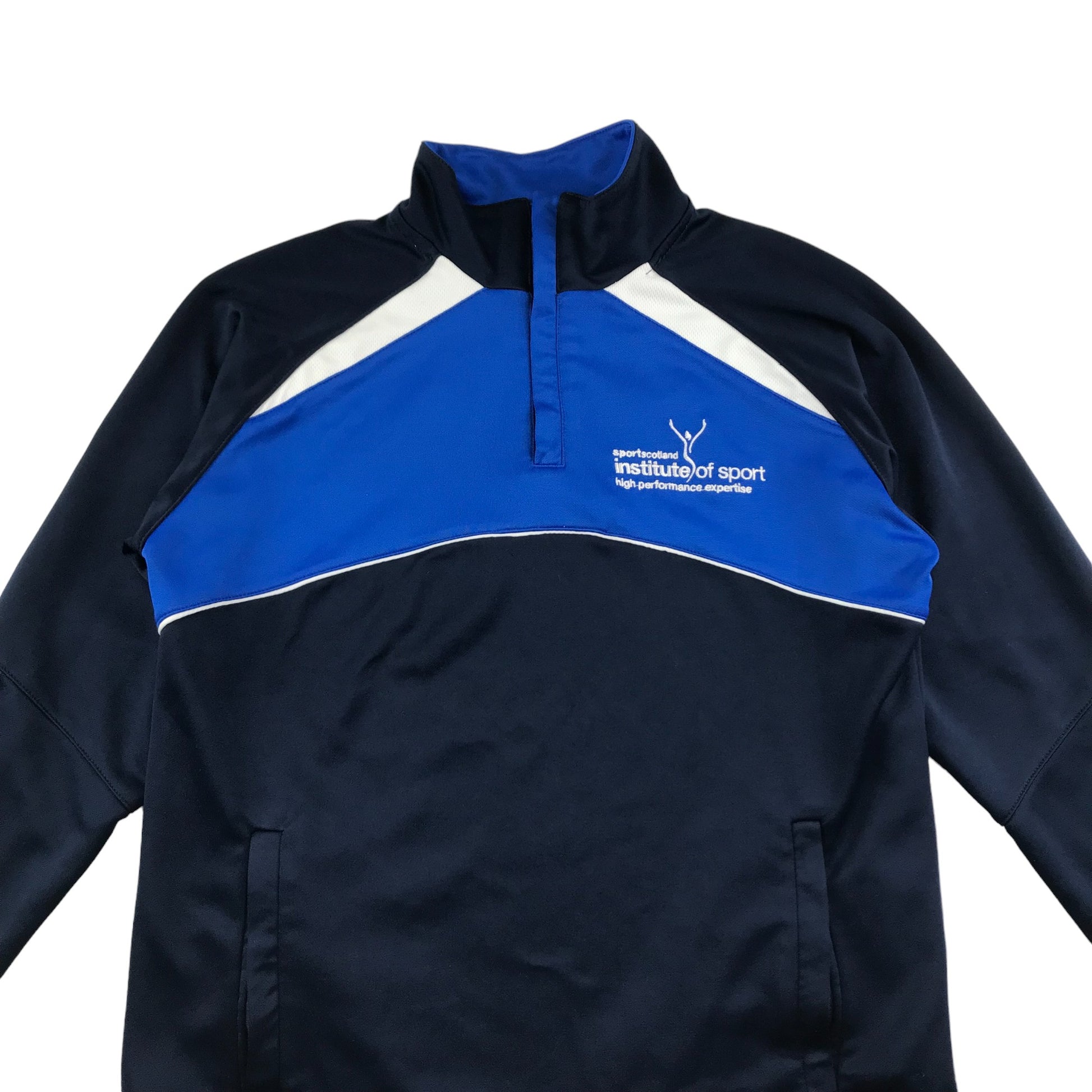Preloved second hand Sport Scotland Sweater Age 11-13 Navy and Blue Half Zipper Top
