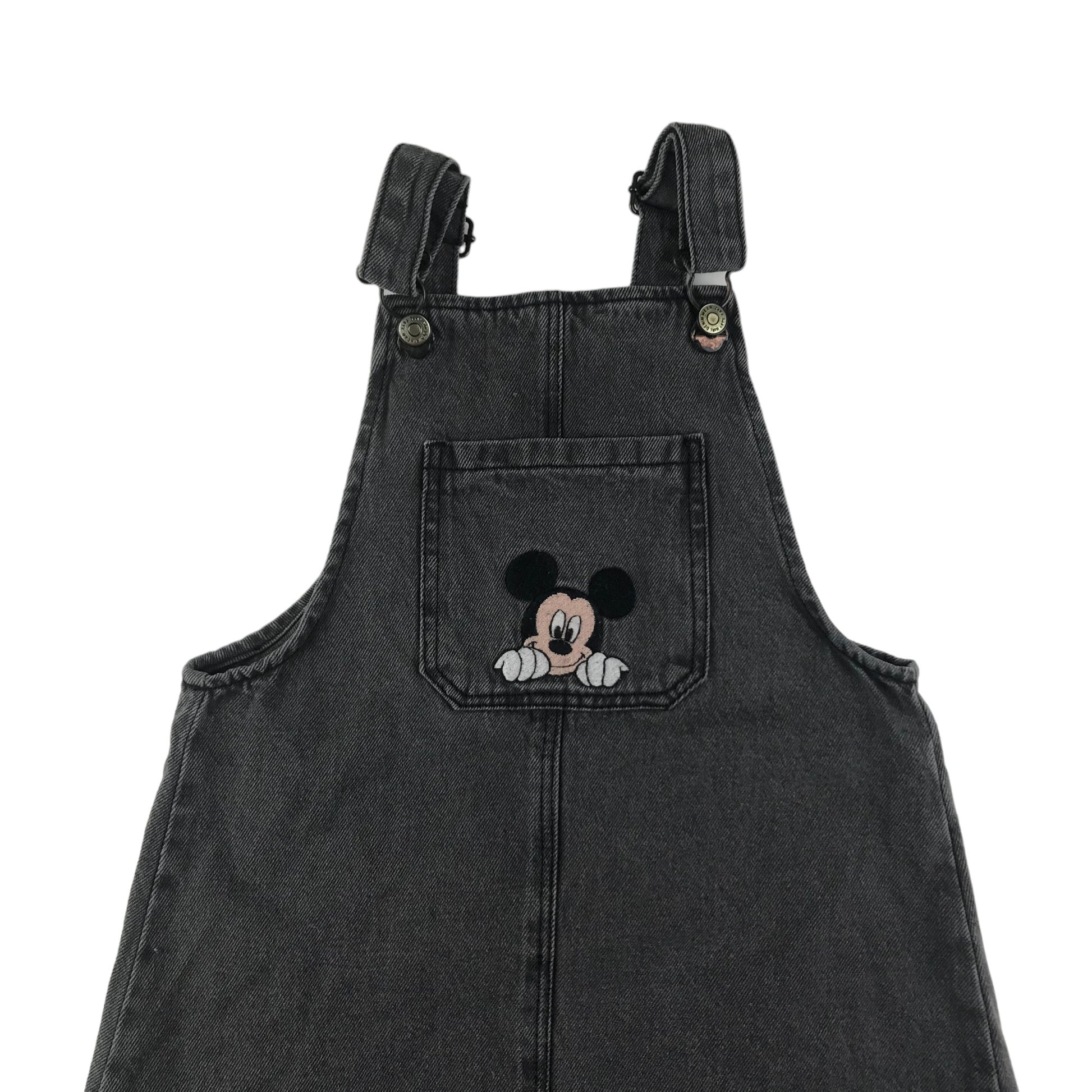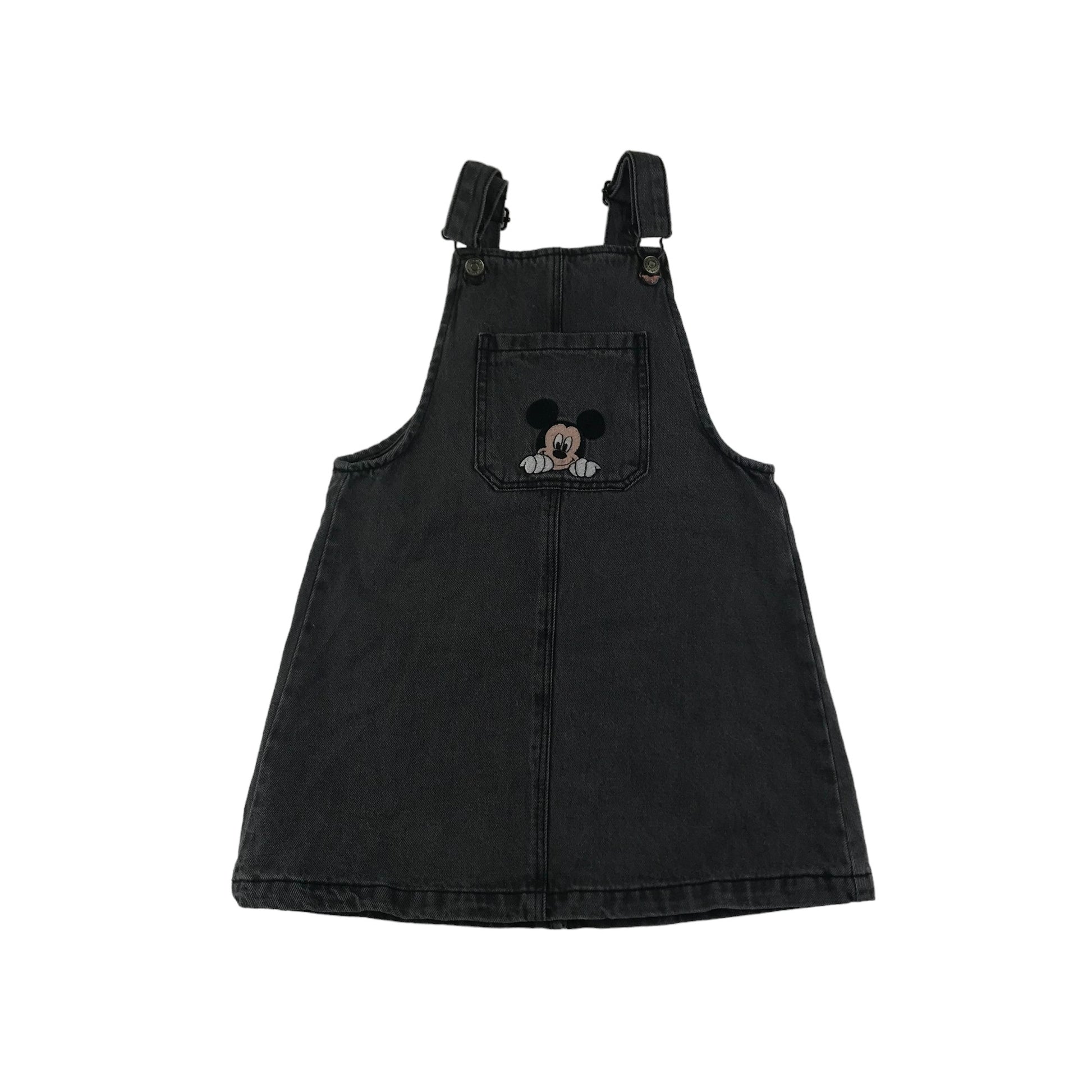 Zara Dungaree Dress Age 4 Dark Grey Mickey mouse Embroidery Cotton