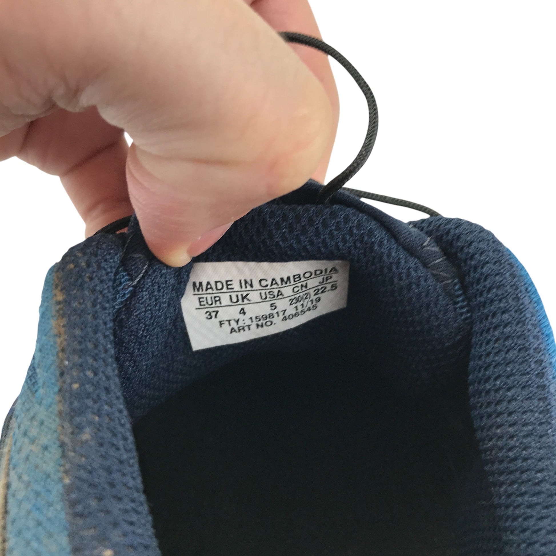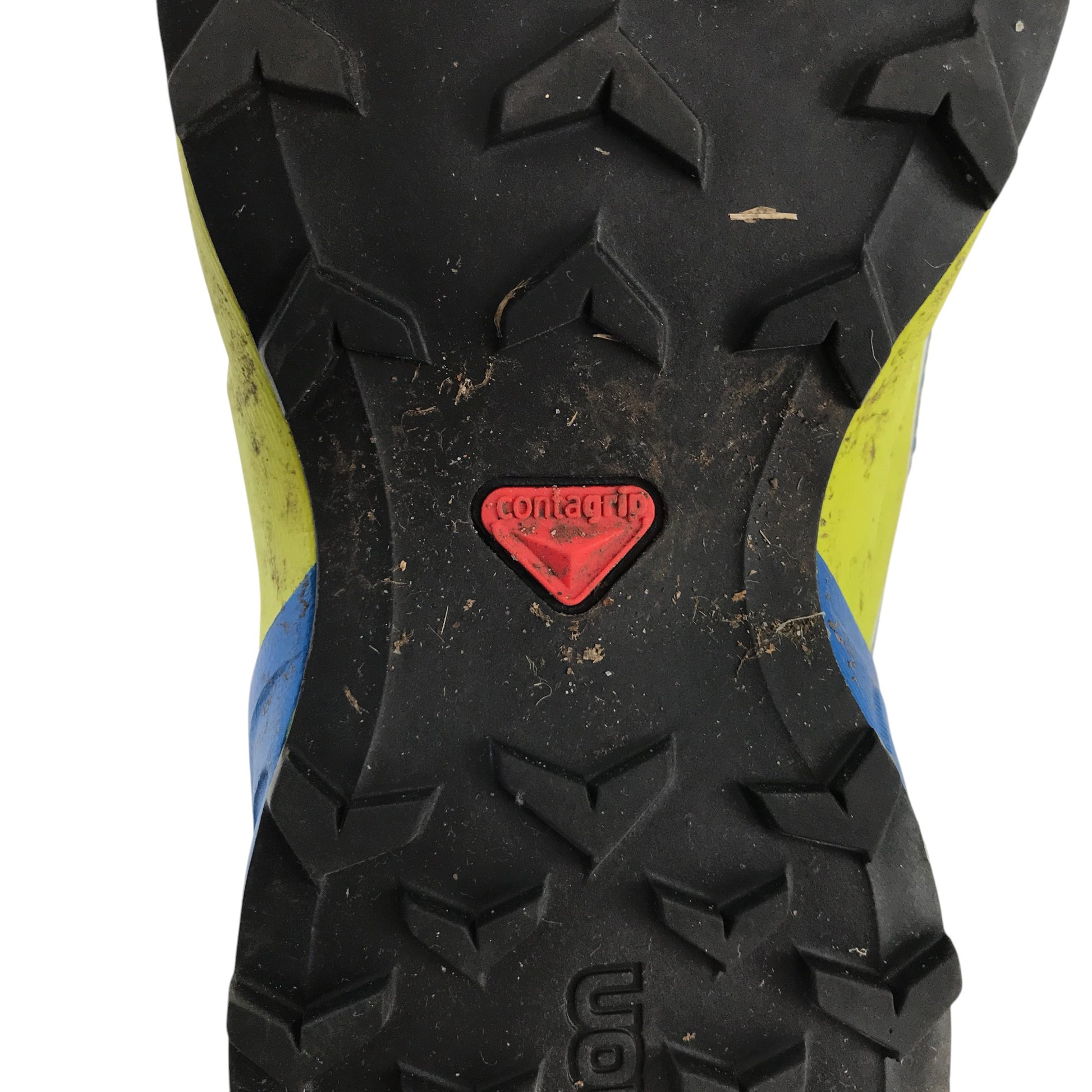 Preloved second hand Salomon trainers shoe size UK 4 blue and yellow speed cross pull cord slip on