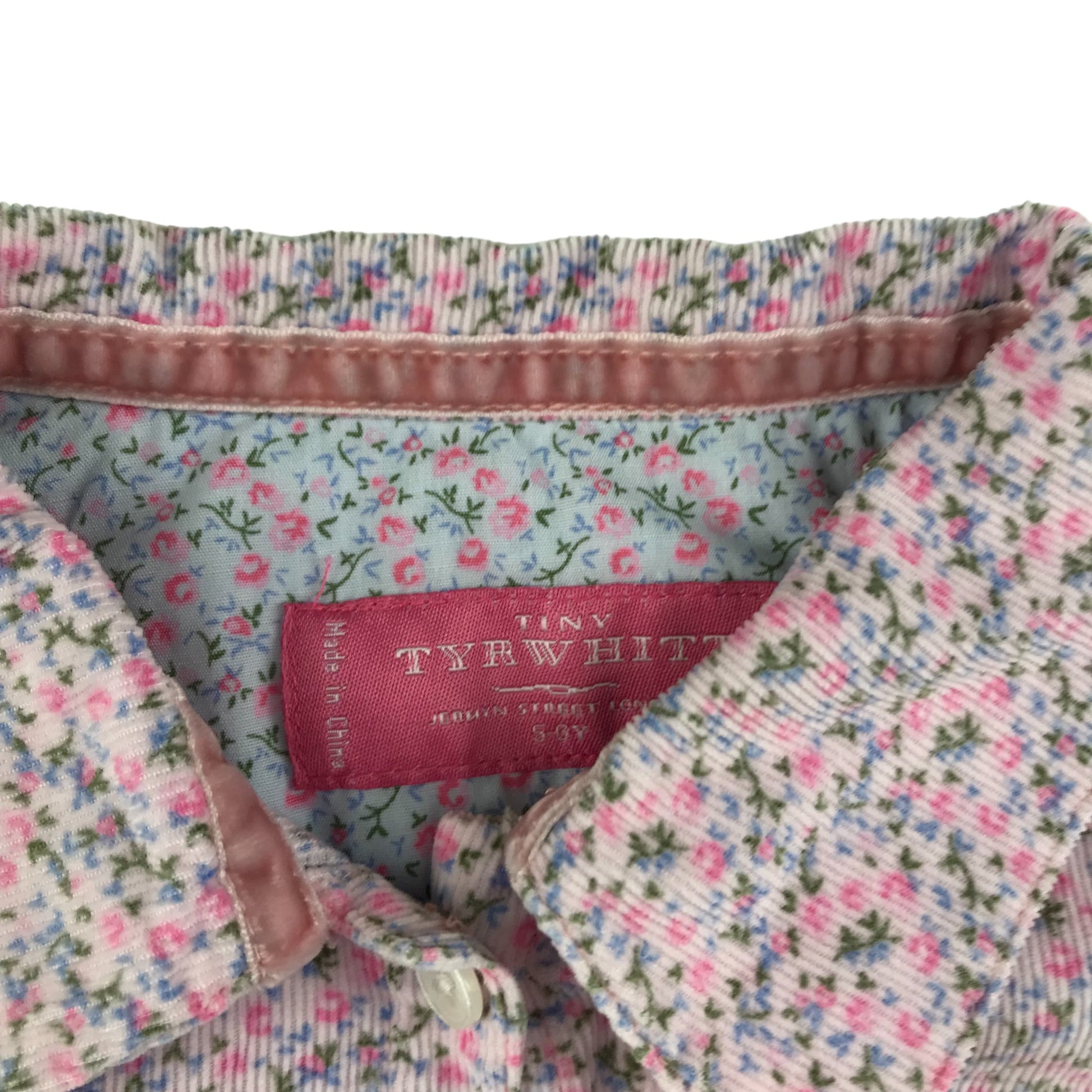 Tiny Tyrwhitt Blouse Age 5 Pink Floral Long Sleeve Corduroy Shirt Cotton