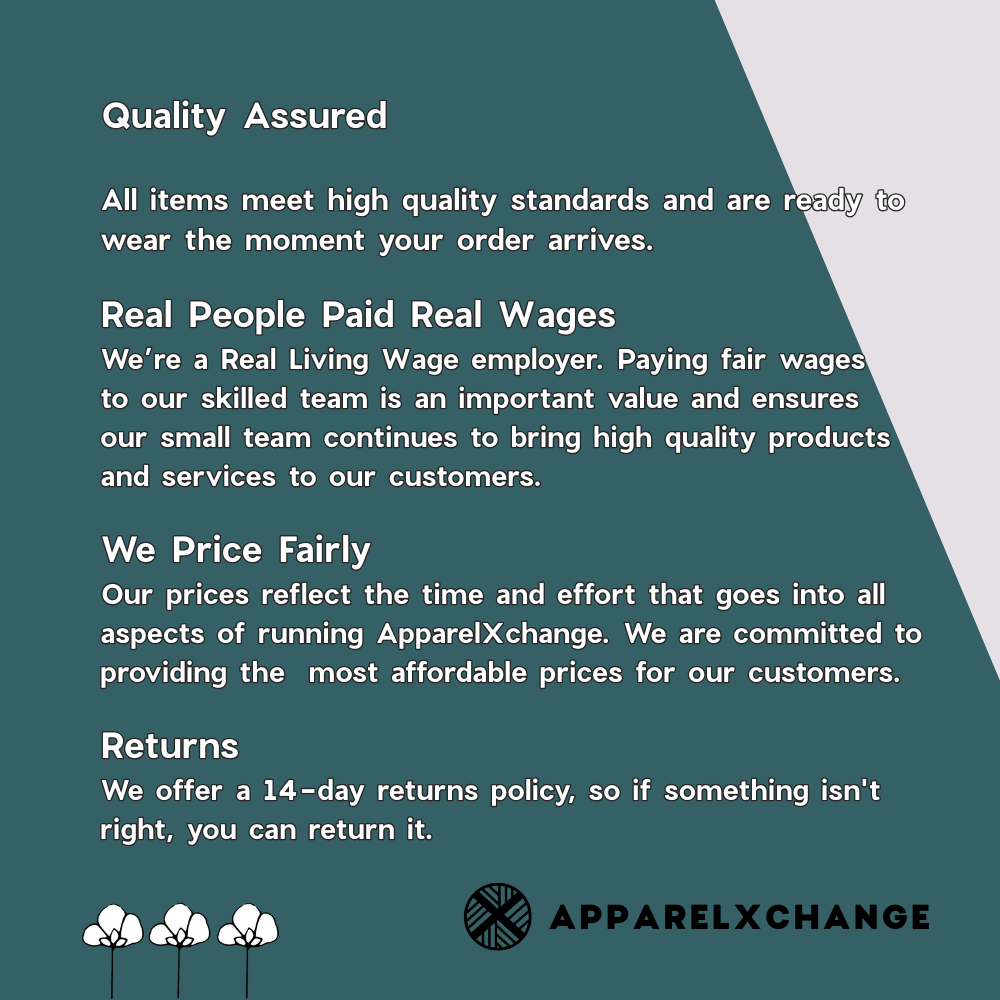We are a Living Wage employer and our small team works hard to bring you beautiful quality preloved kids fashion that you can trust. By choosing us, you're supporting our mission to help tackle clothing poverty for young people in Glasgow.