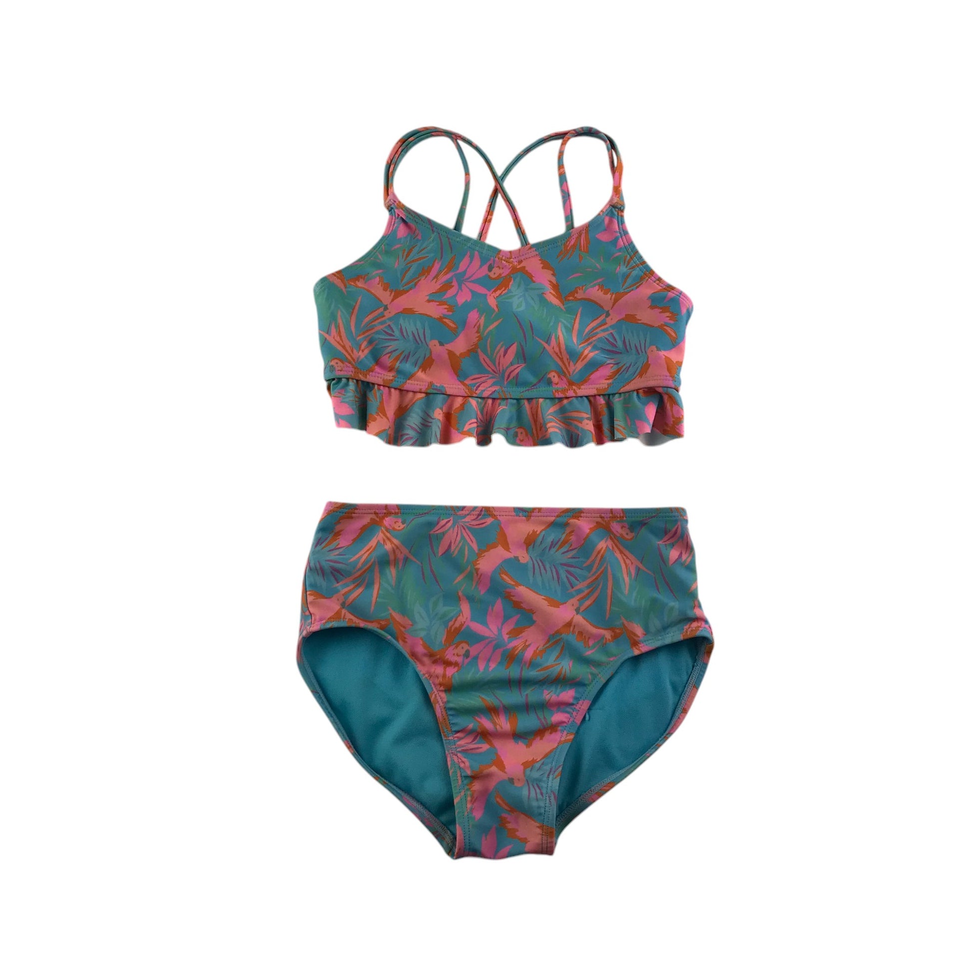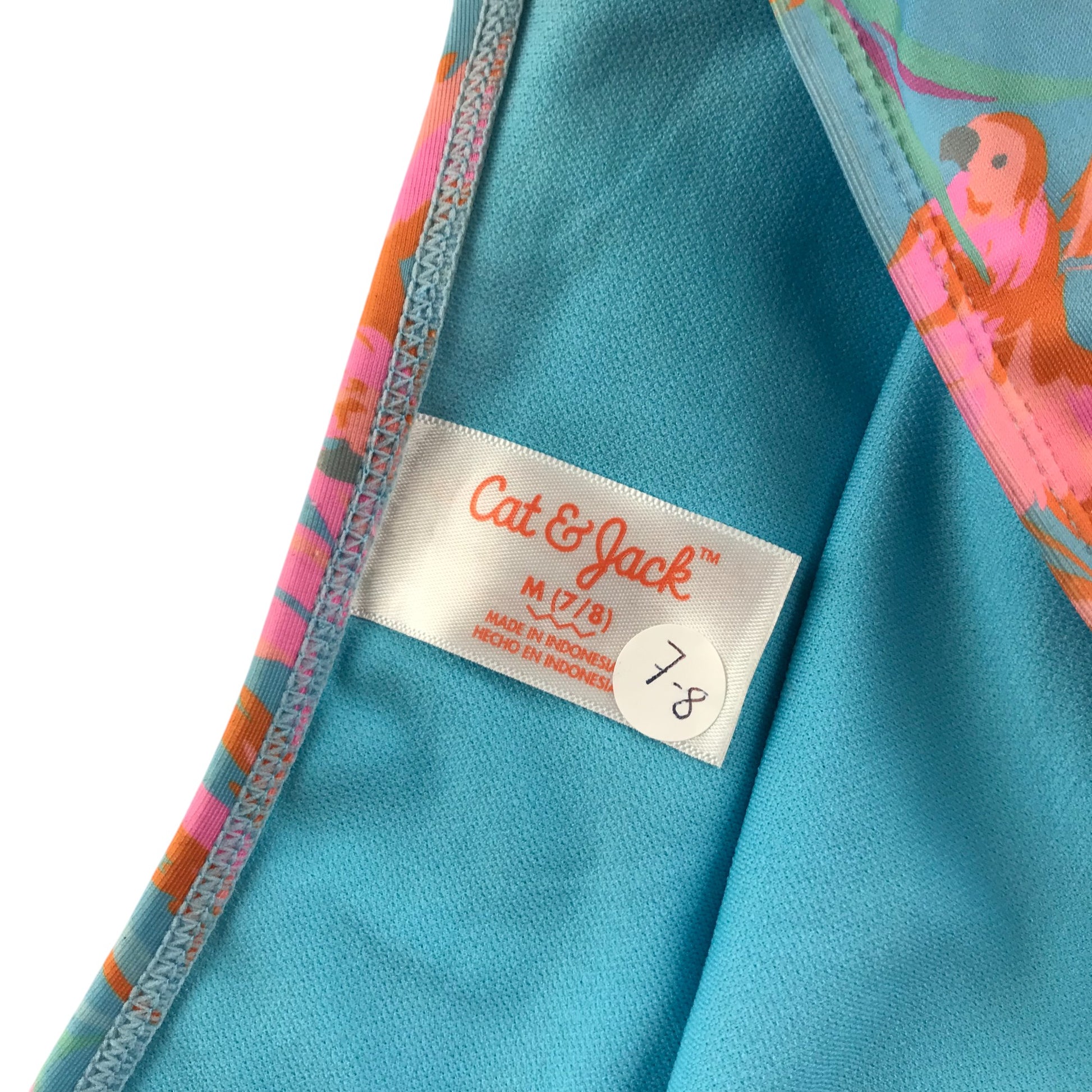 Cat & Jack swimsuit 7-8 years blue pink and orange parrots 2-piece set