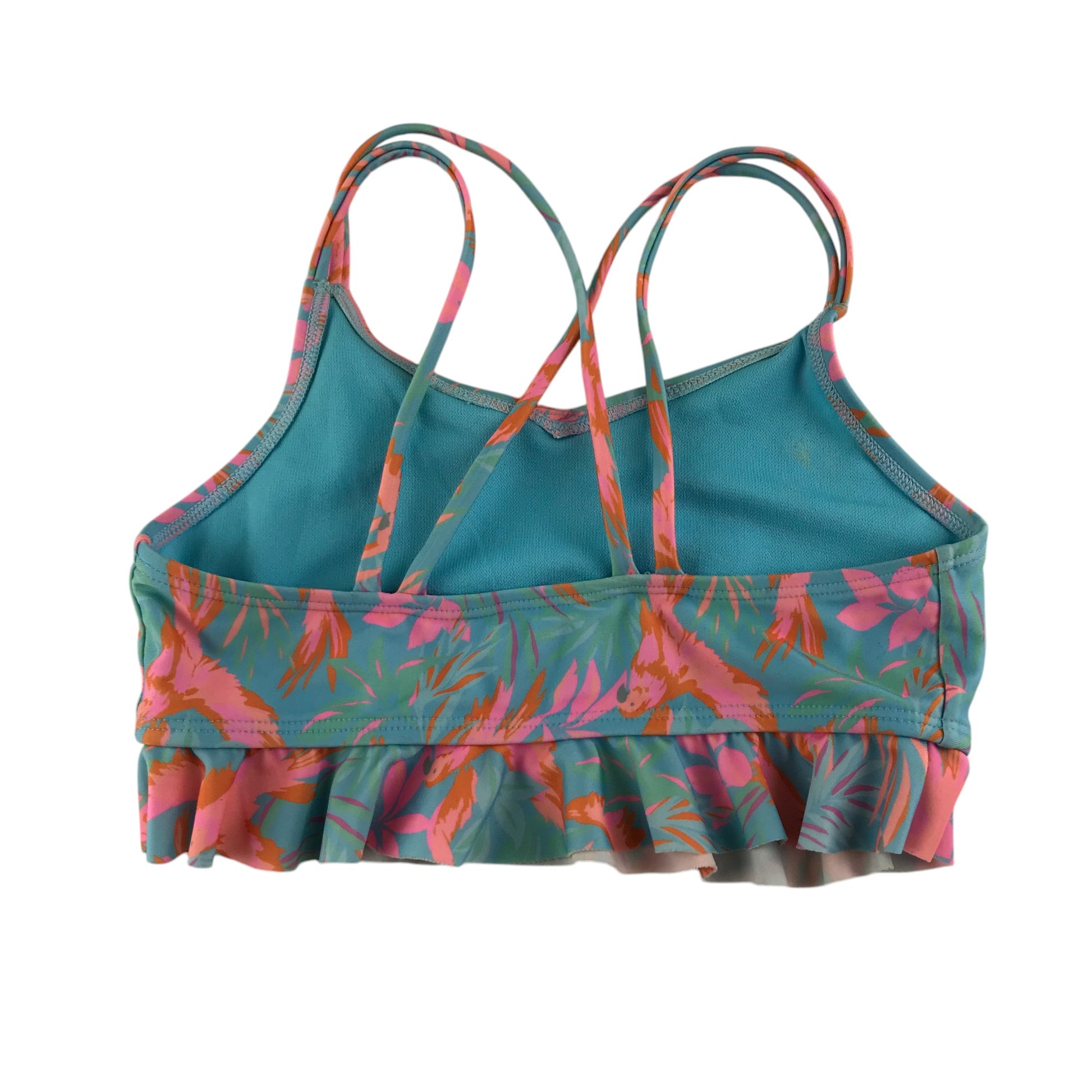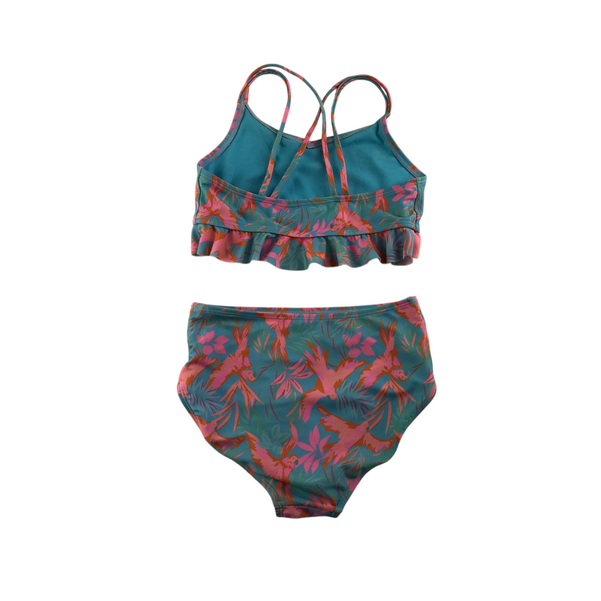 Preloved second hand Cat & Jack swimsuit 7-8 years blue pink and orange parrots 2-piece set