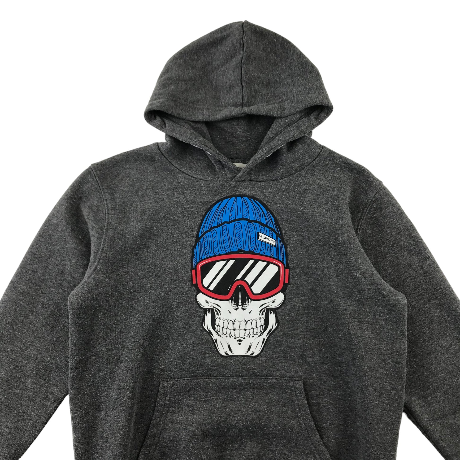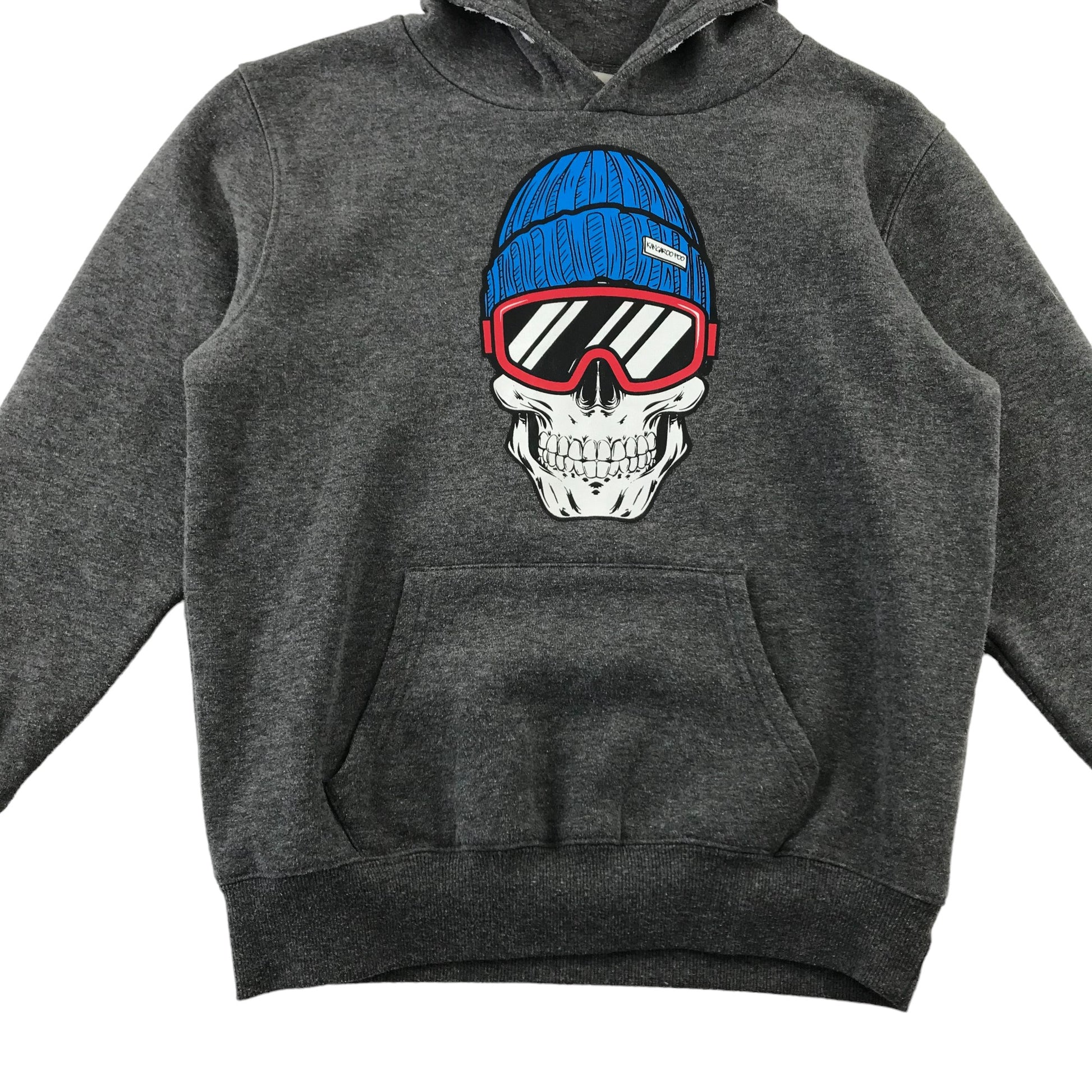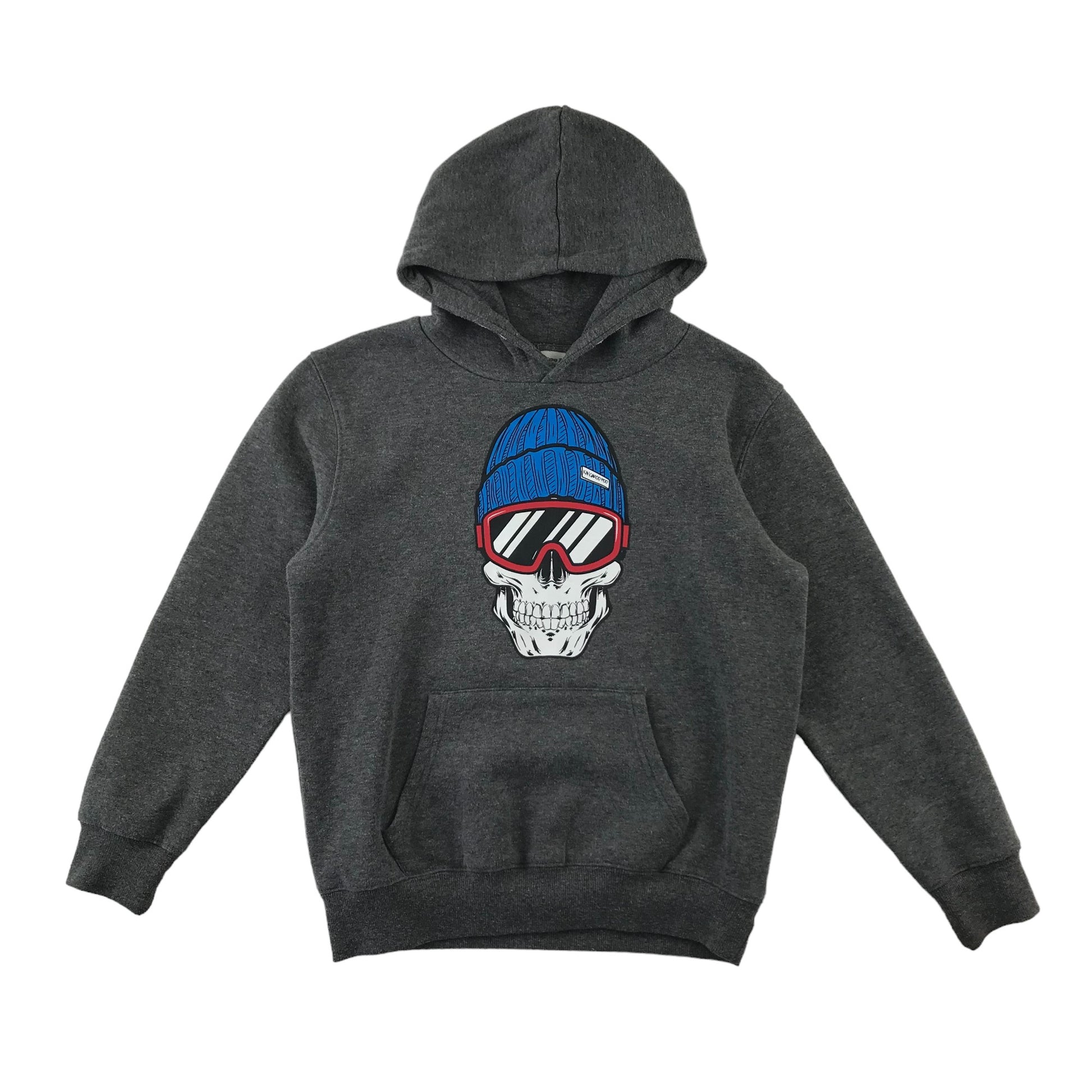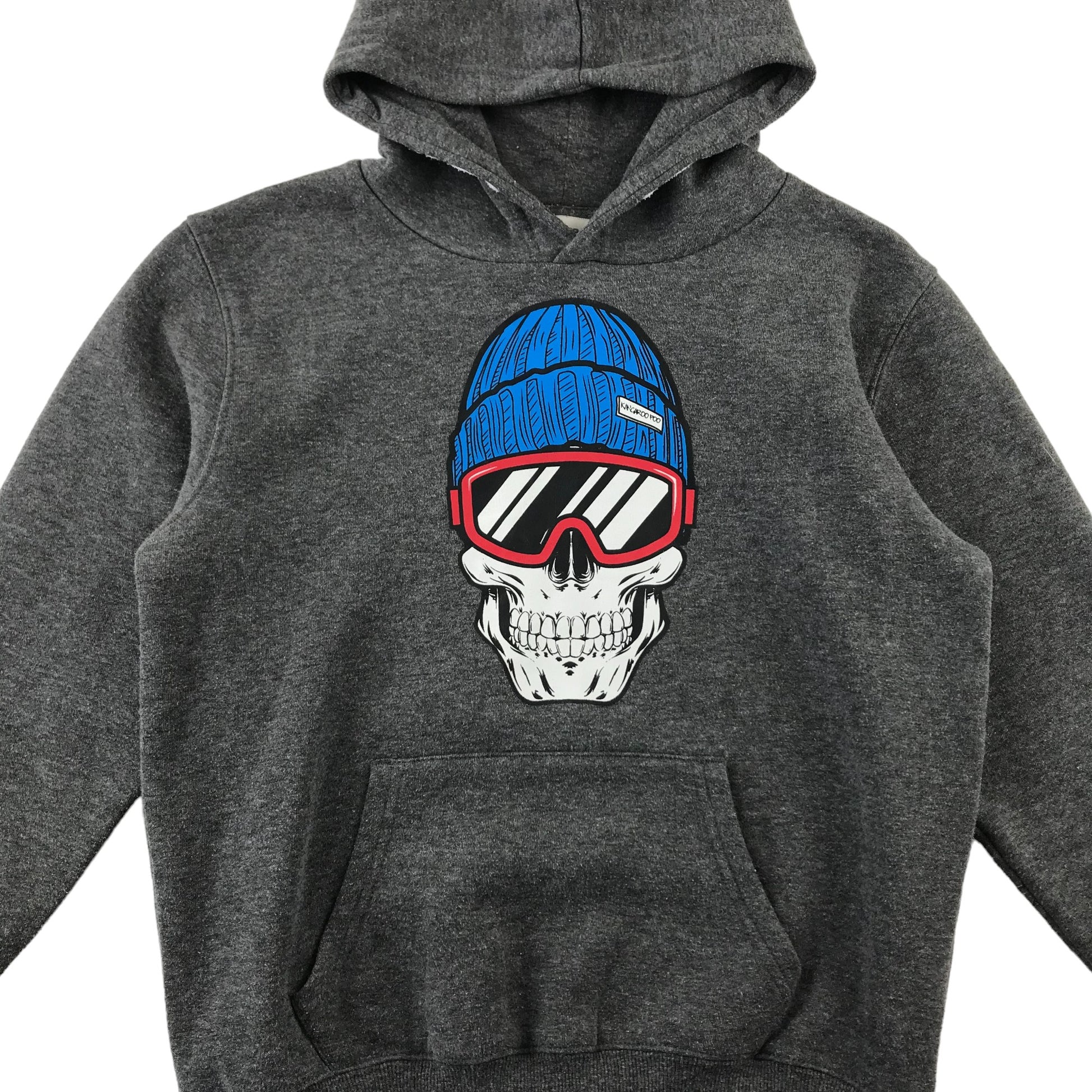 Preloved second hand Kangaroo Poo hoodie 9-10 years grey skull with beanie hat graphic