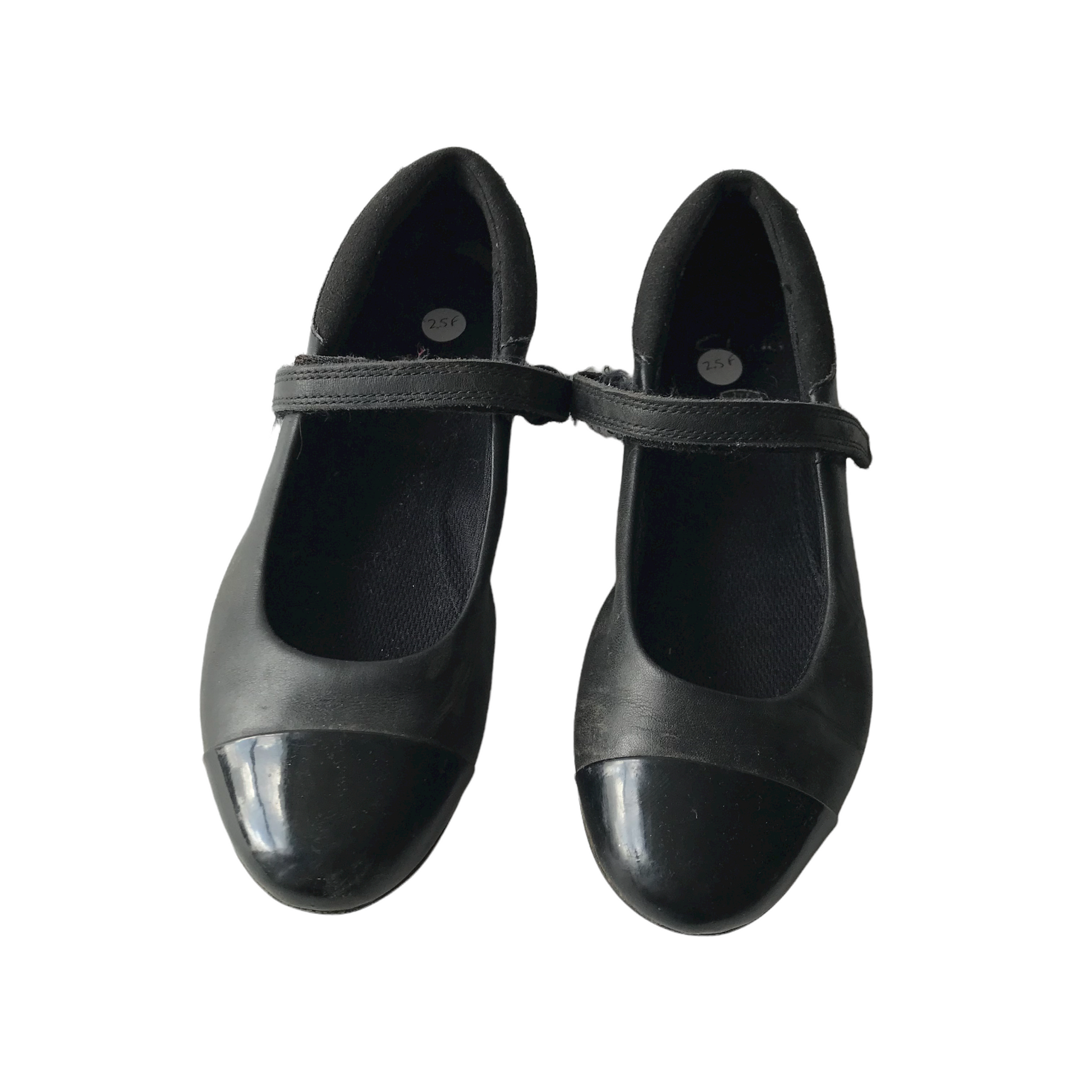 Preloved second hand Clarks Black School Pumps with Single Strap Shoe Size 2.5F