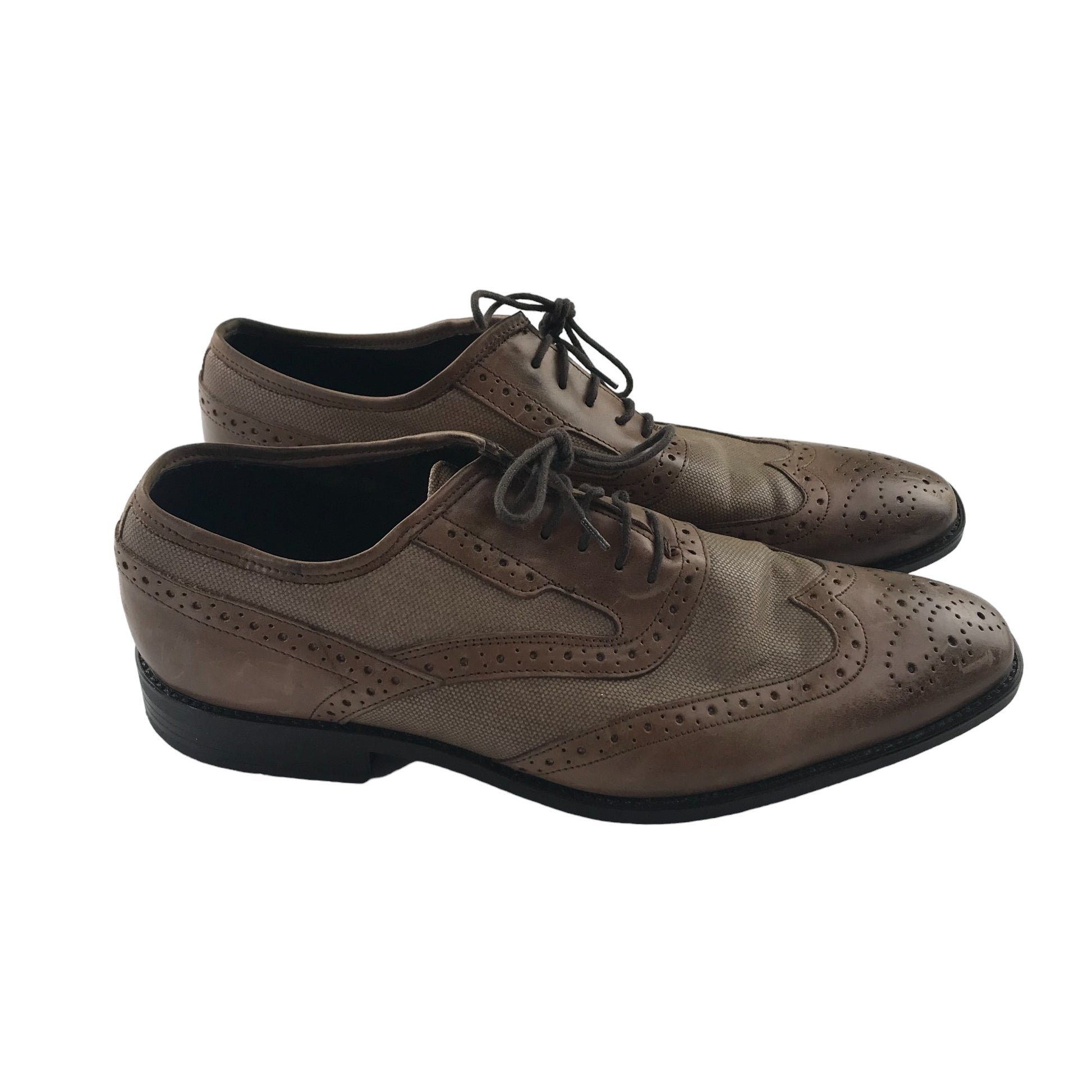 Preloved second hand Collezione brogue shoes shoe size 9.5 light brown leather and fabric formal