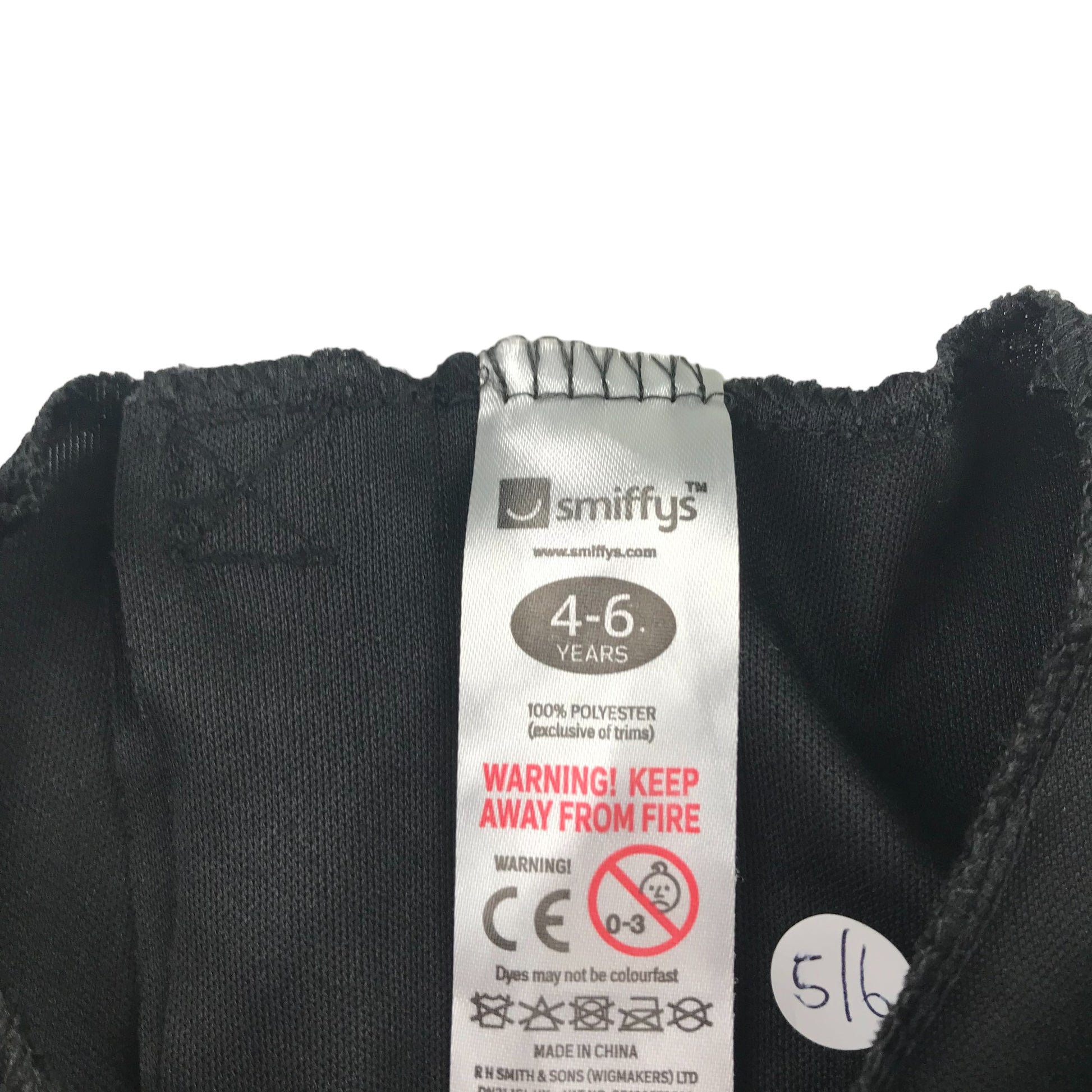 Preloved second hand Smiffys Costume 4-6 Years Black Ninja Outfit with Dragon and Blue Details