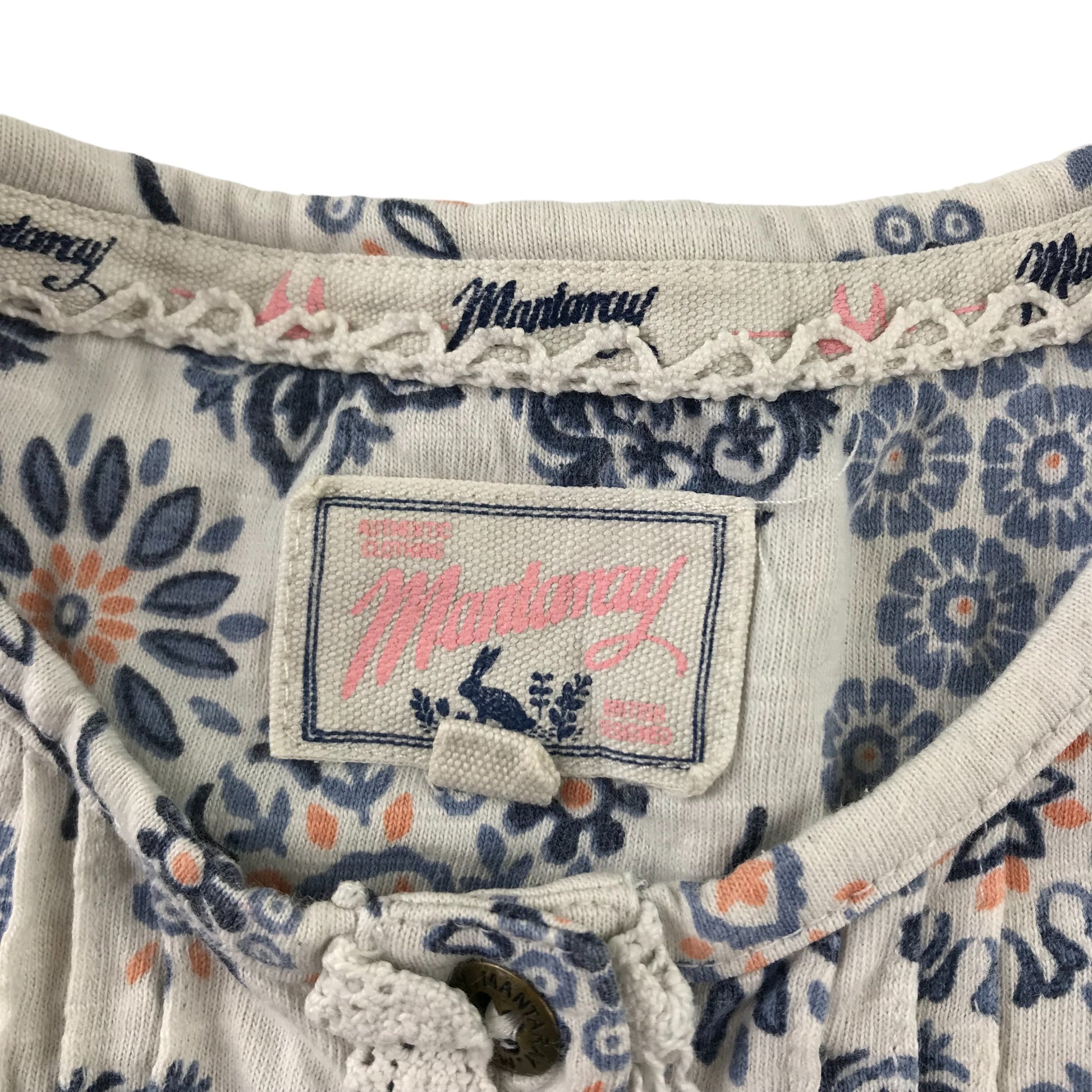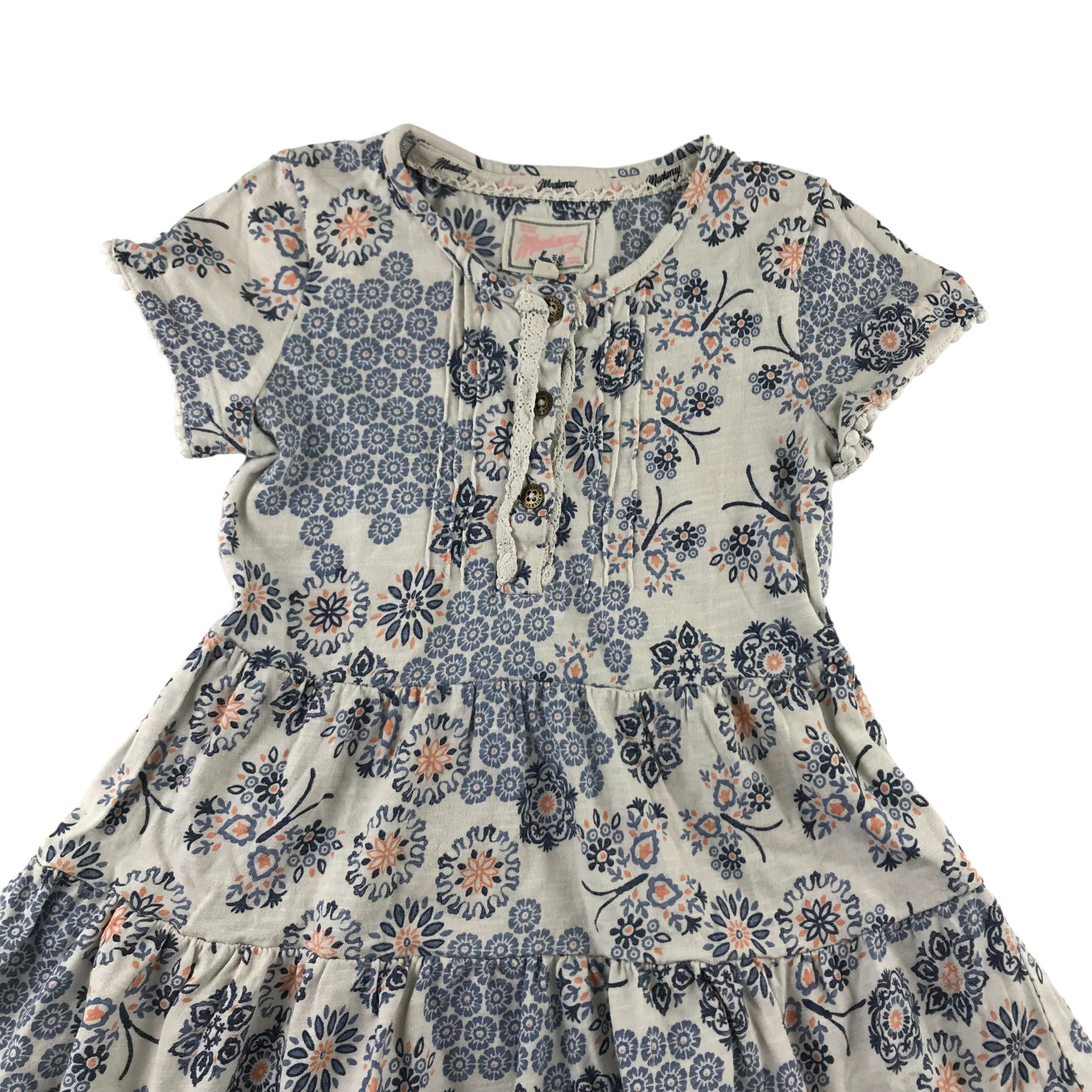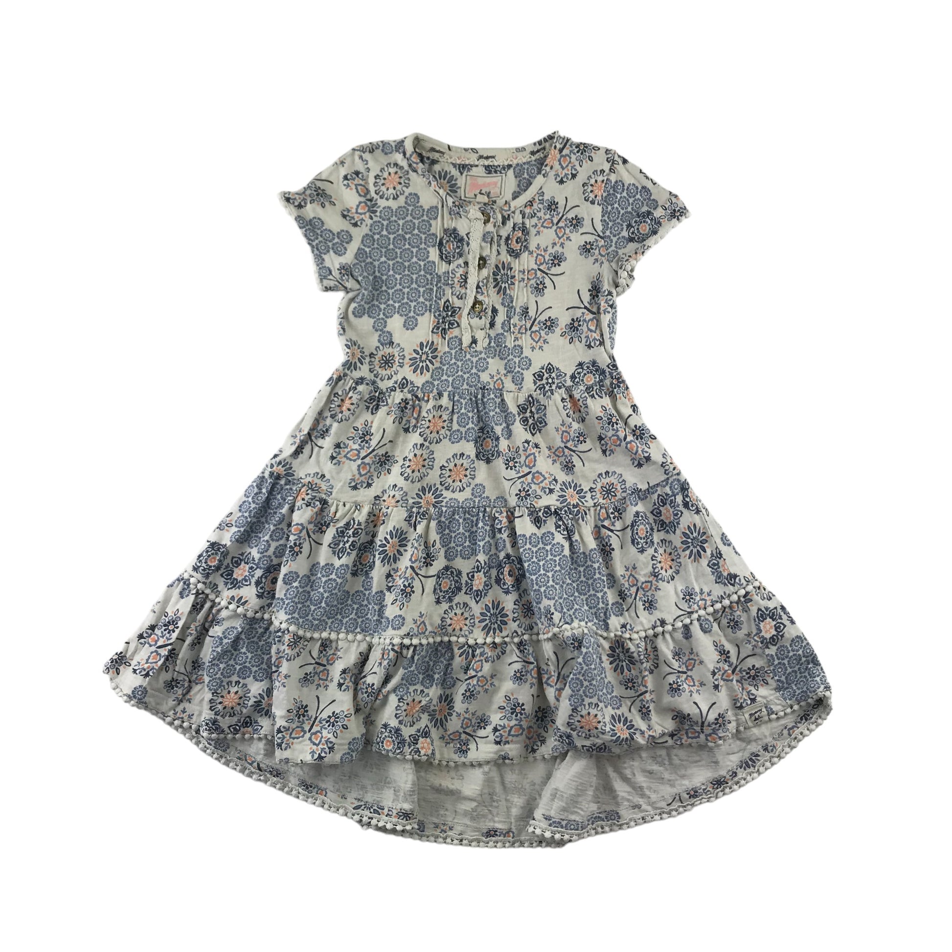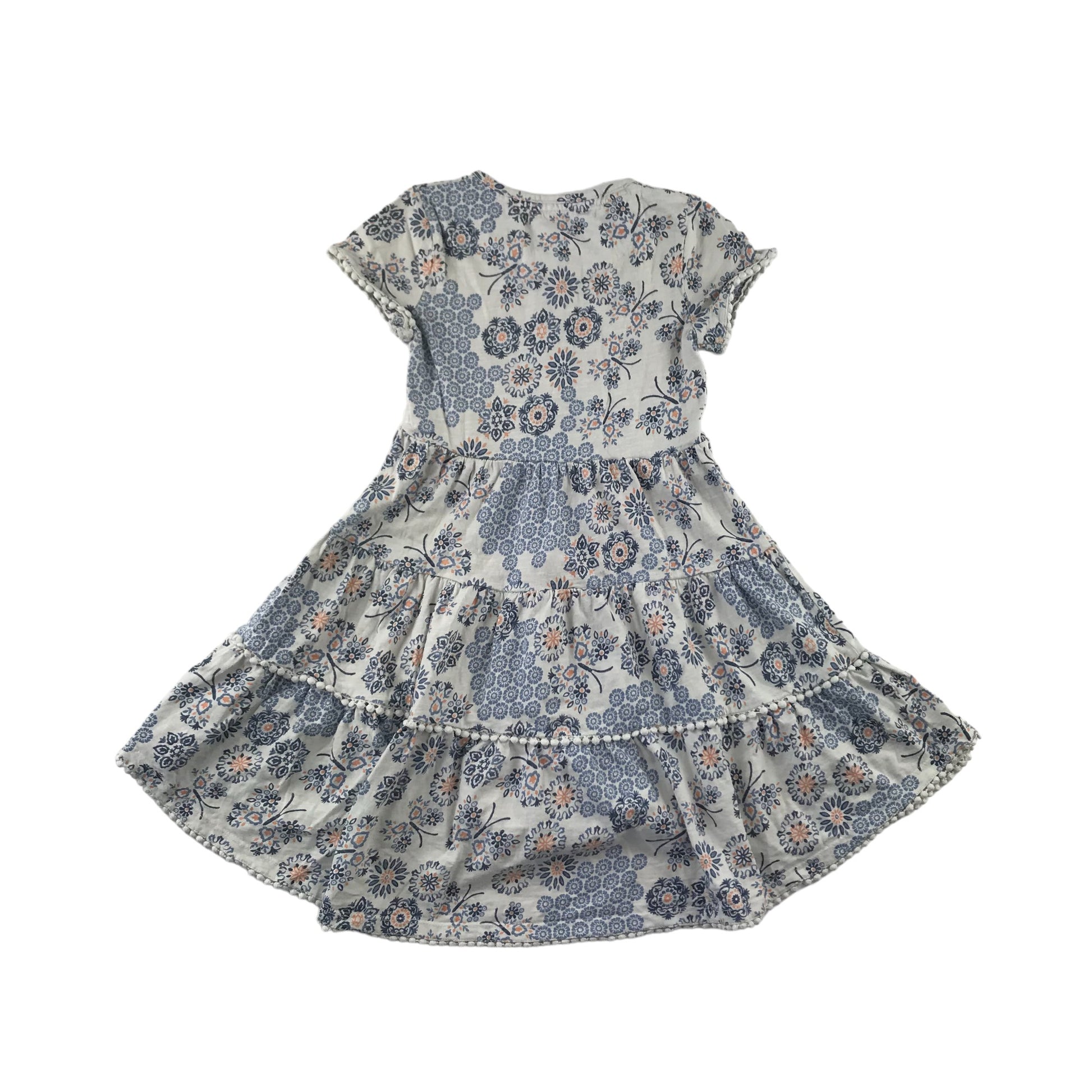 Preloved second hand Mantaray Dress Age 5 White and Light Blue Floral Graphic Design Cotton