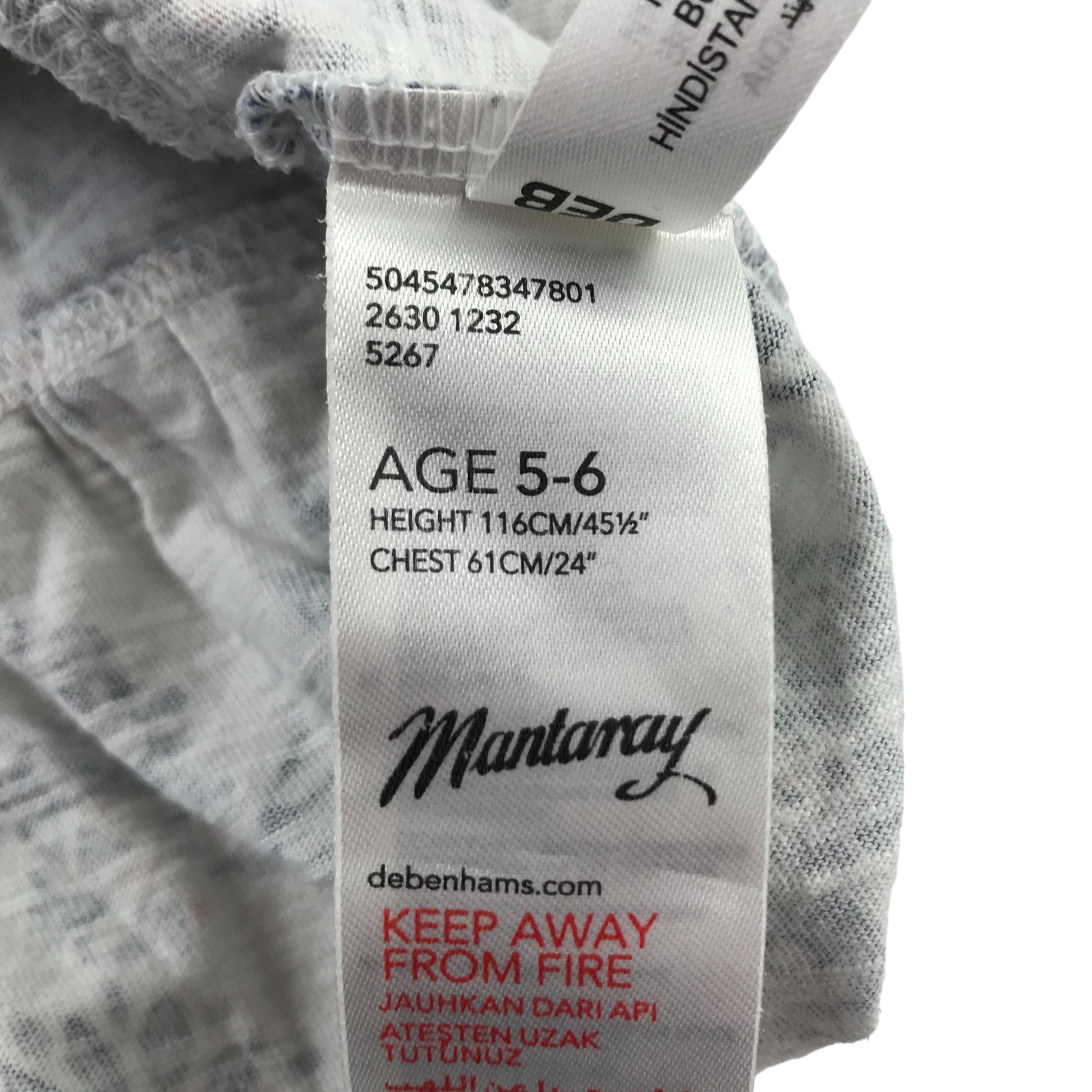 Mantaray Dress Age 5 White and Light Blue Floral Graphic Design Cotton