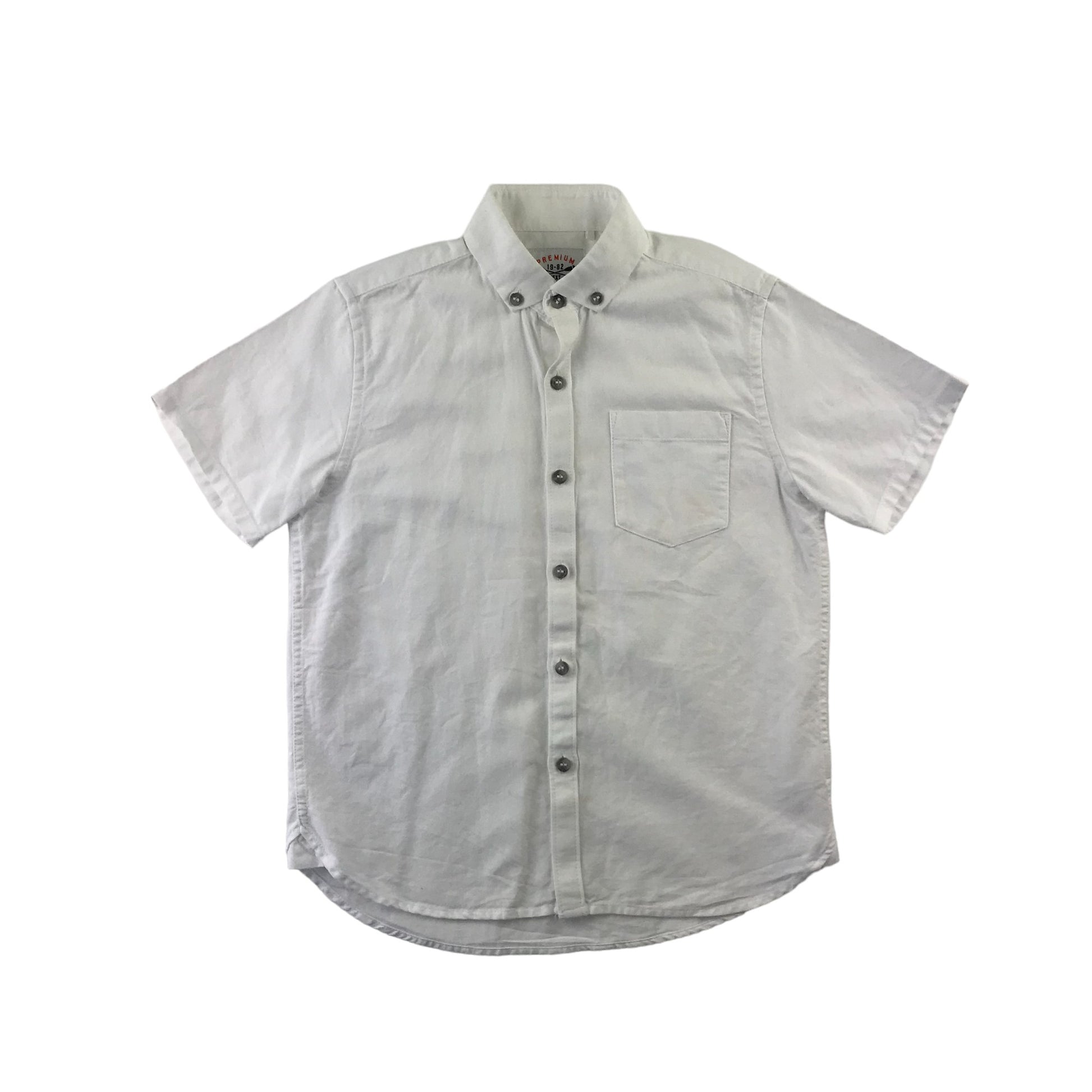 Next Shirt Age 7 White Plain Short Sleeve Button Up Cotton