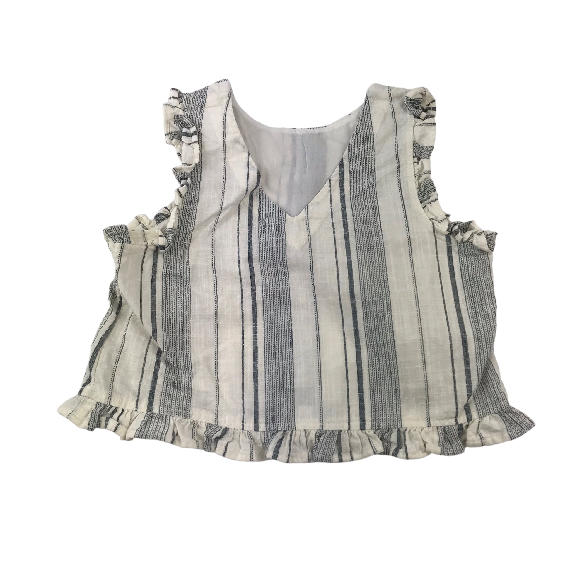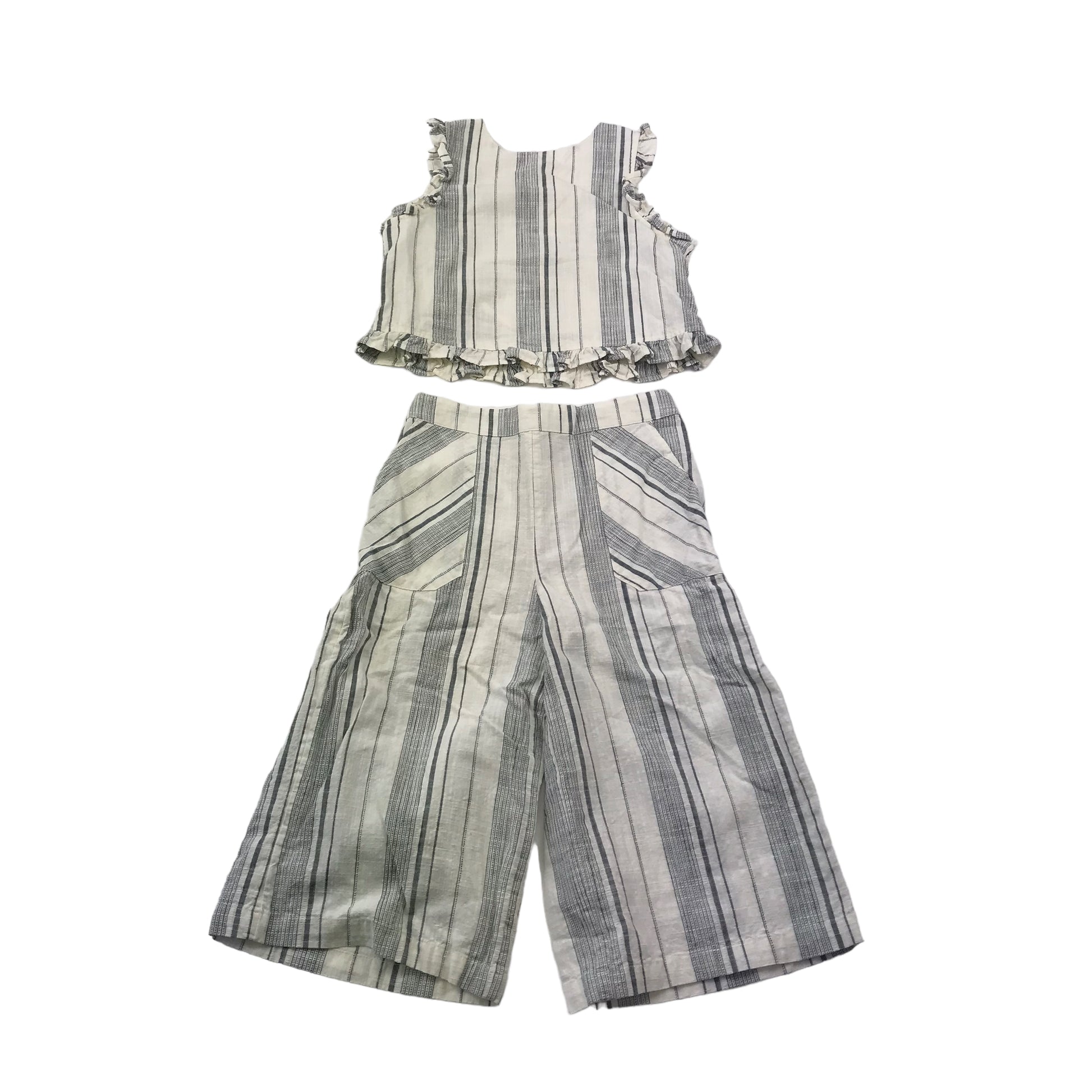 Preloved second hand Tu White and Navy Stripy Top and Bottom Set Age 6