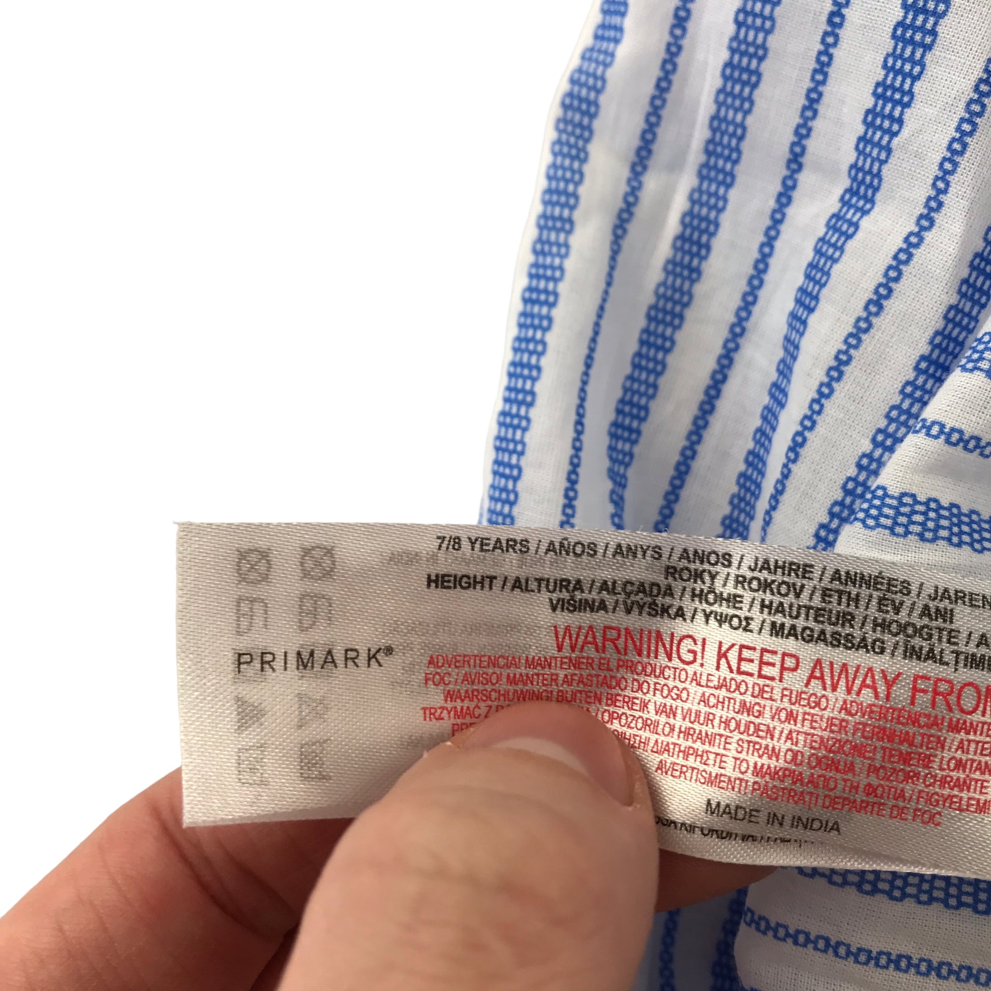 Primark Dress Age 7 Blue and White Stripes Cotton