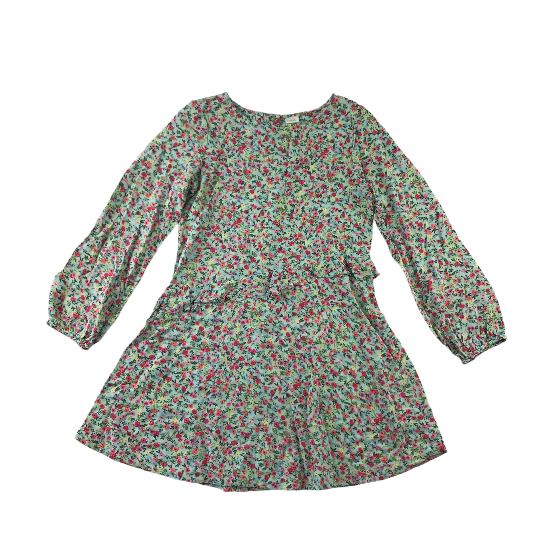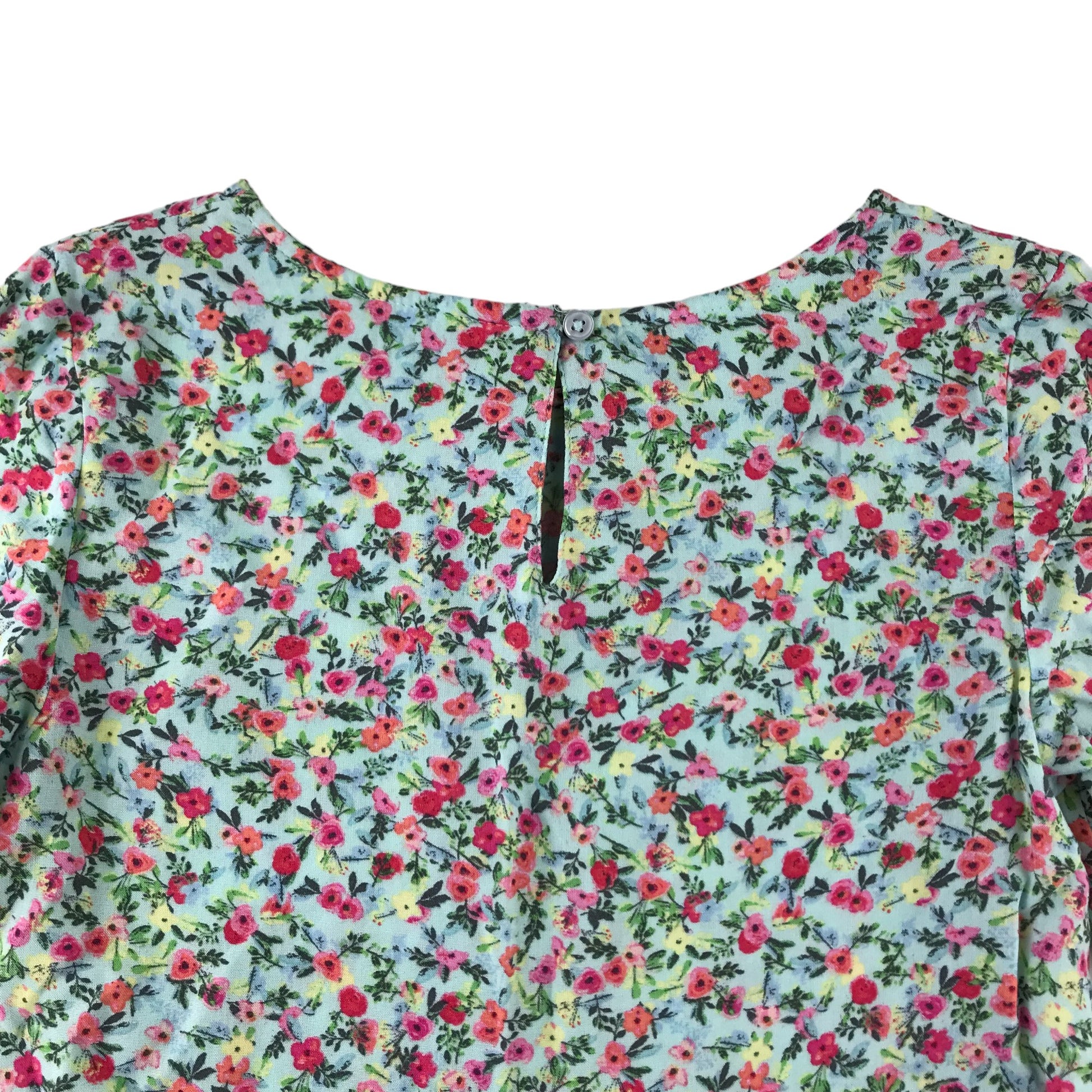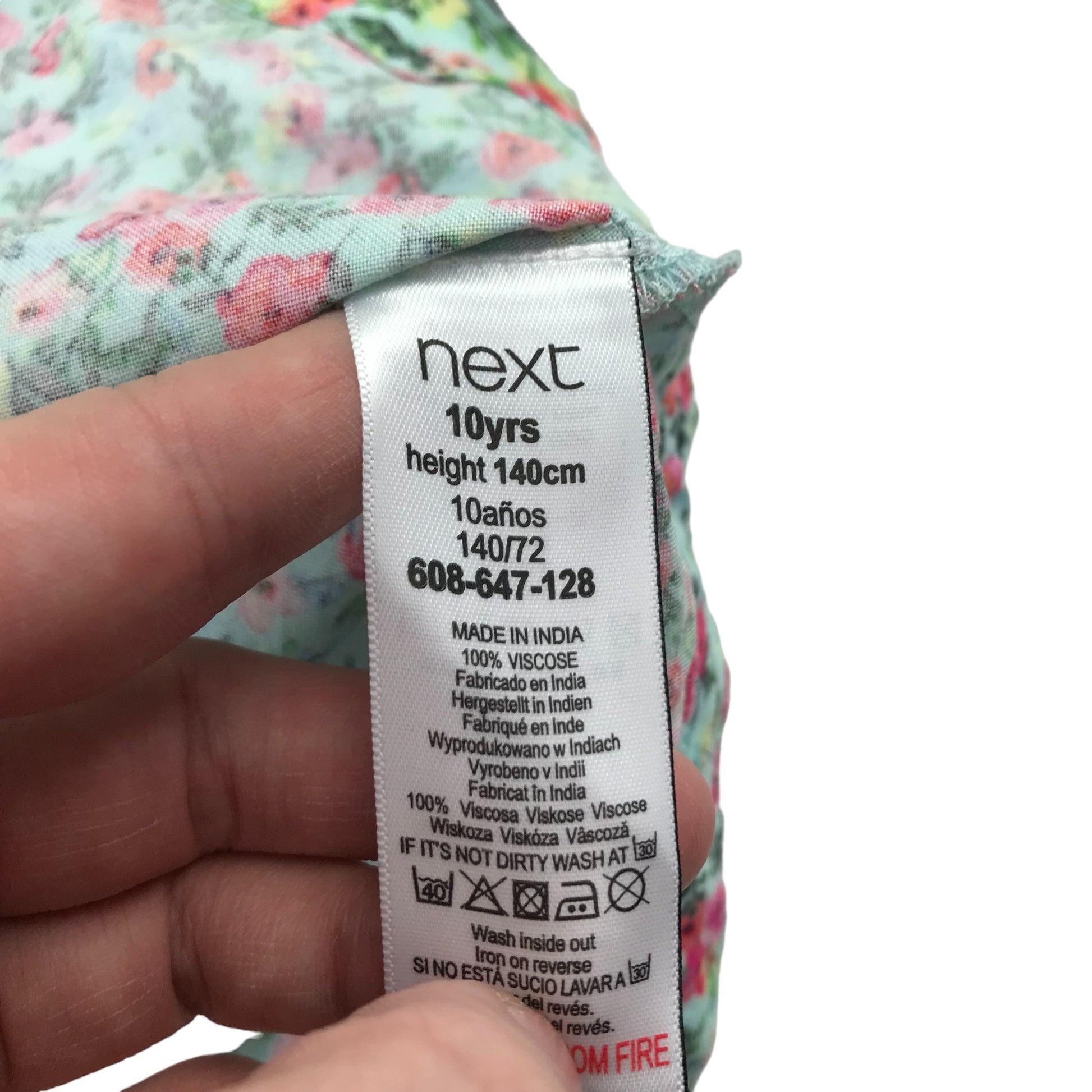 Next Dress Age 9 Light Blue and Green Floral Print Design Frilled Waist