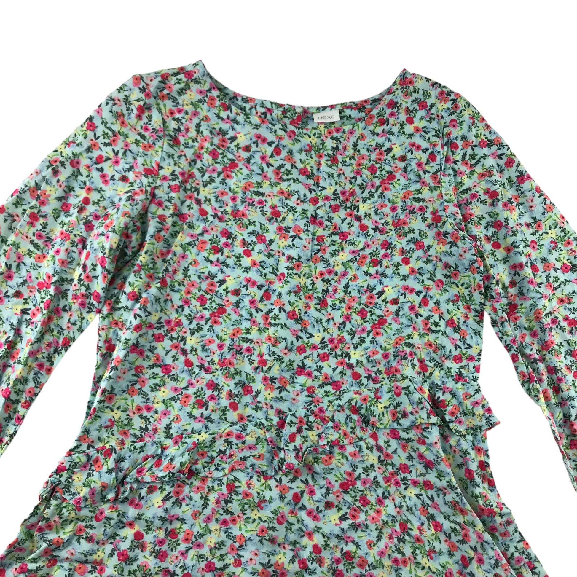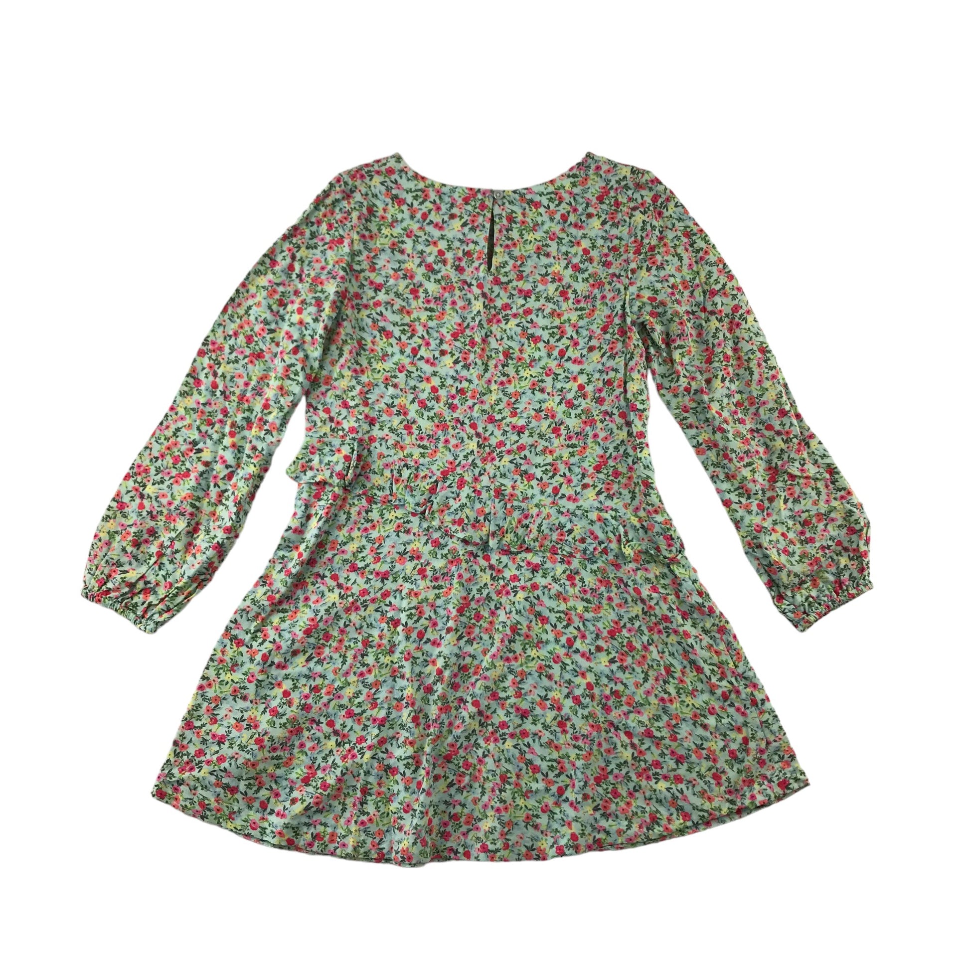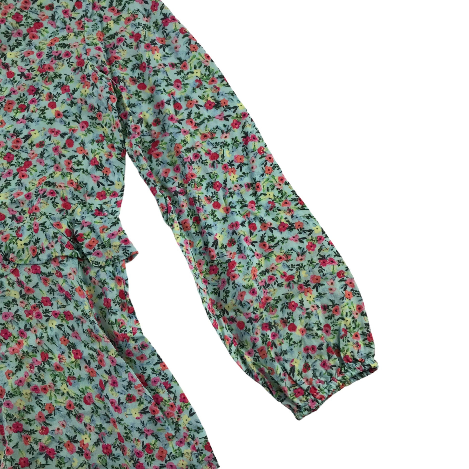 Next Dress Age 9 Light Blue and Green Floral Print Design Frilled Waist