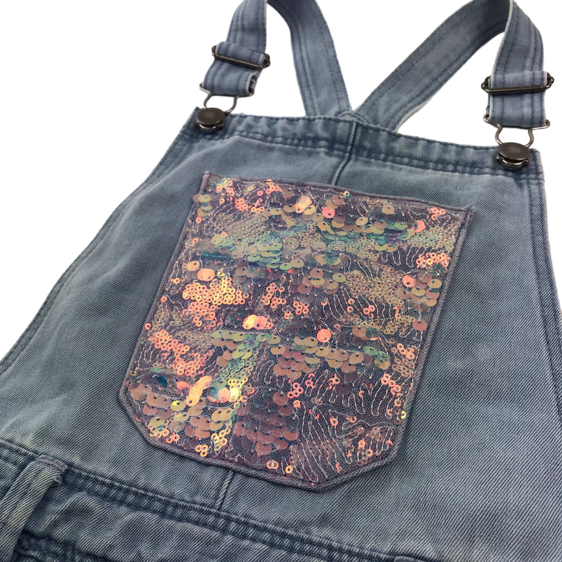 Preloved second hand George Light Blue Sequin Dungaree Dress Age 8