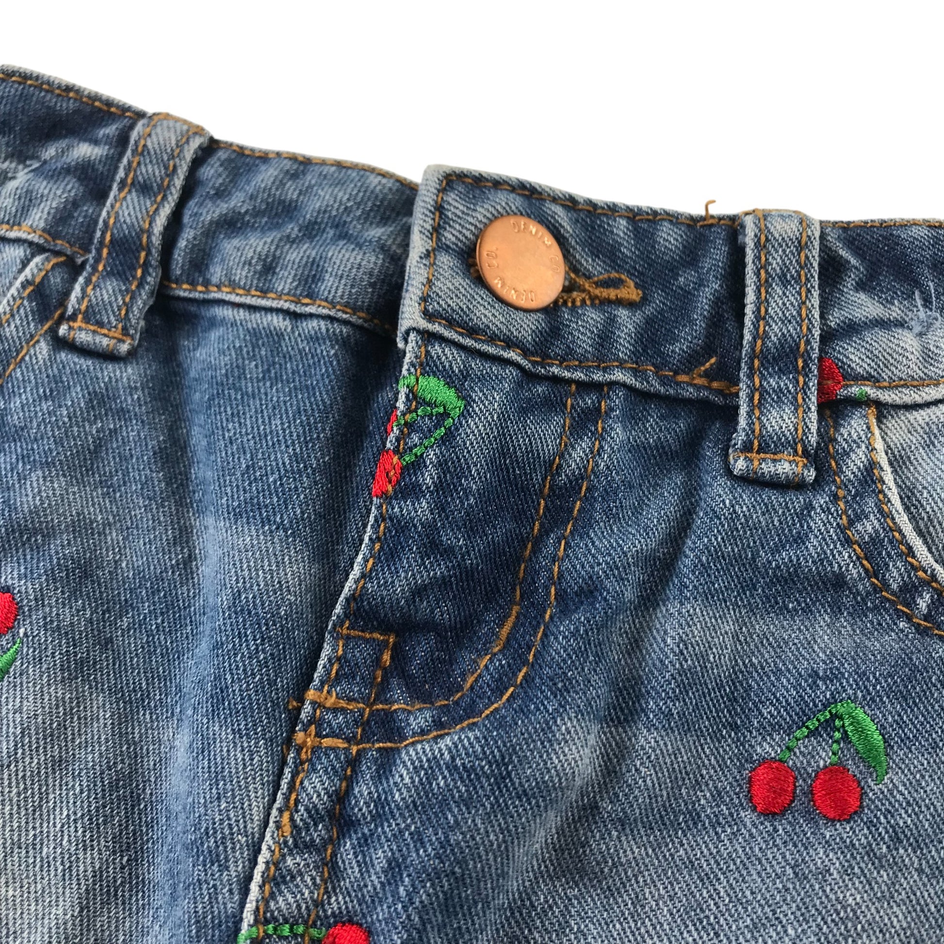 Primark DenimCo Shorts Age 6 Blue Denim Cherry Embroidery Cotton