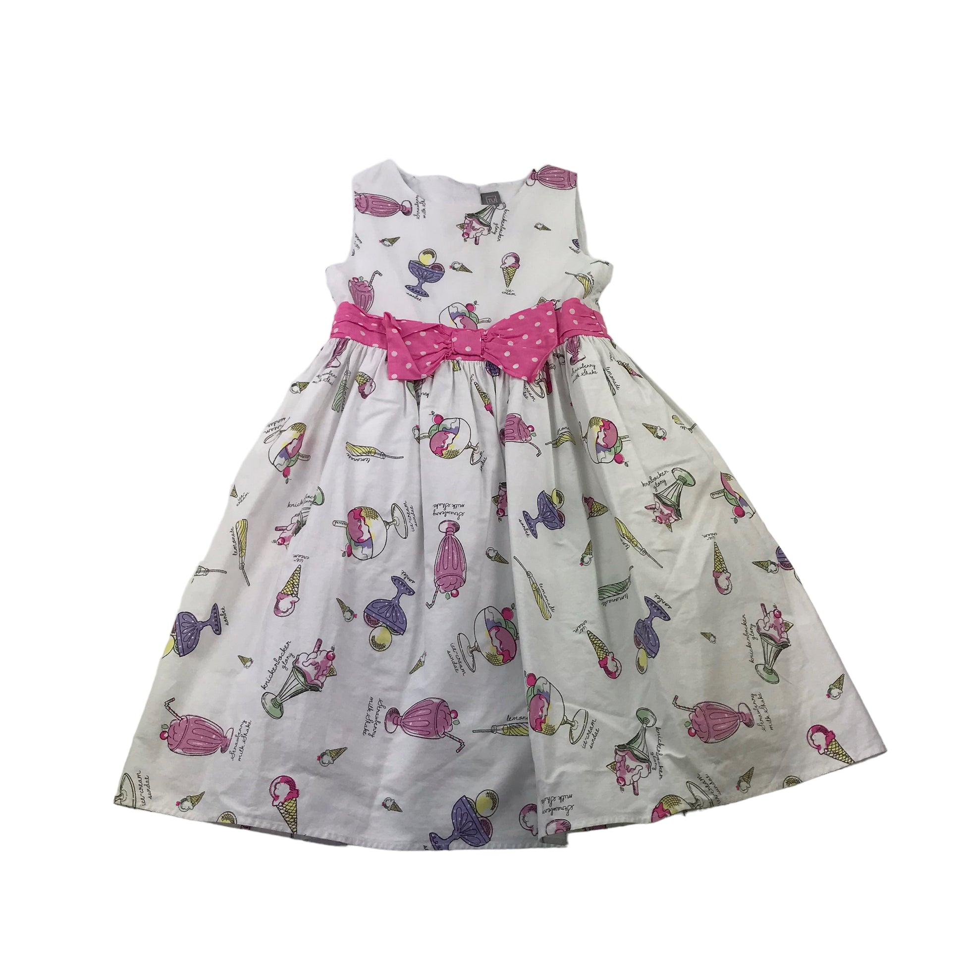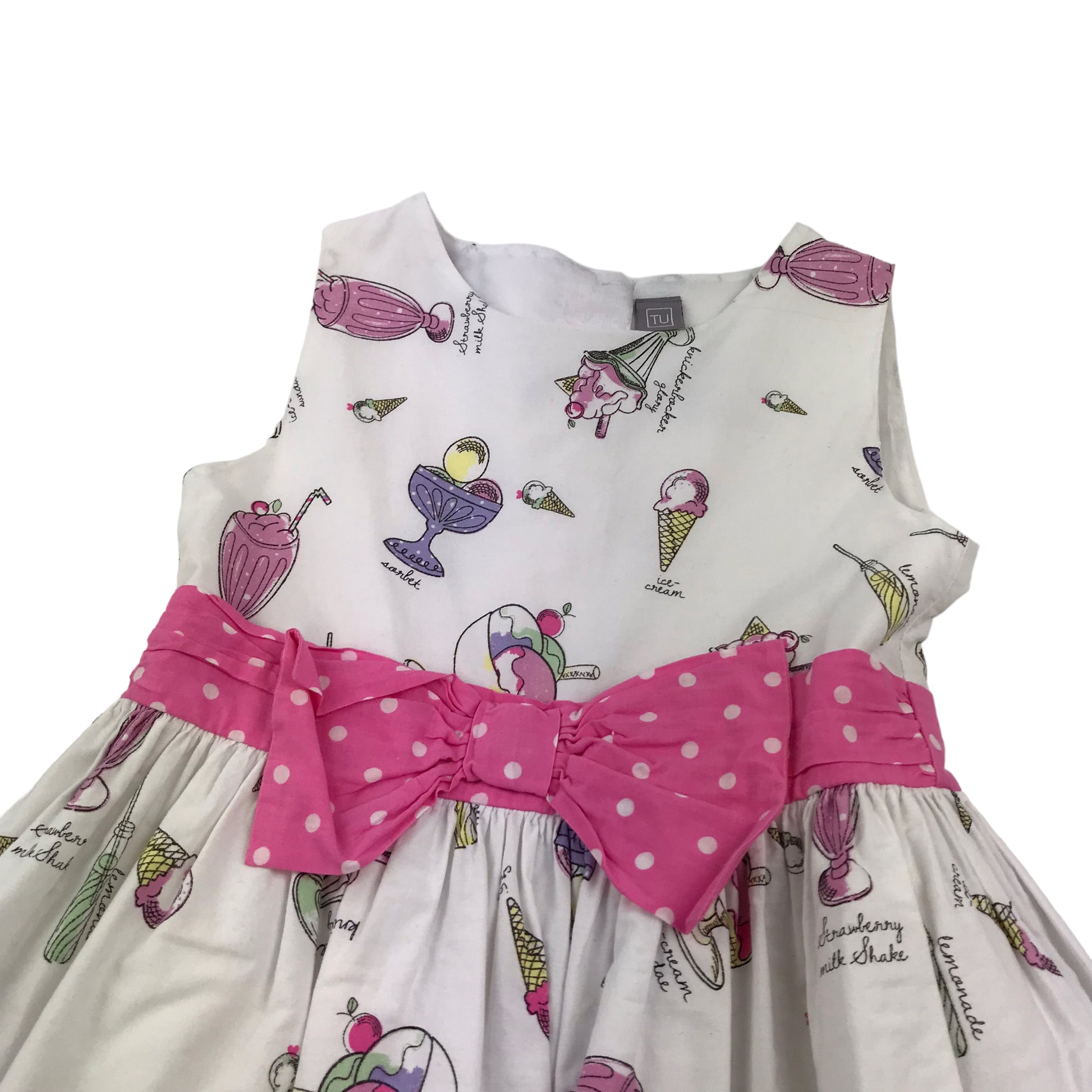 Preloved second hand Tu White Ice Cream Print Cotton Dress Age 8