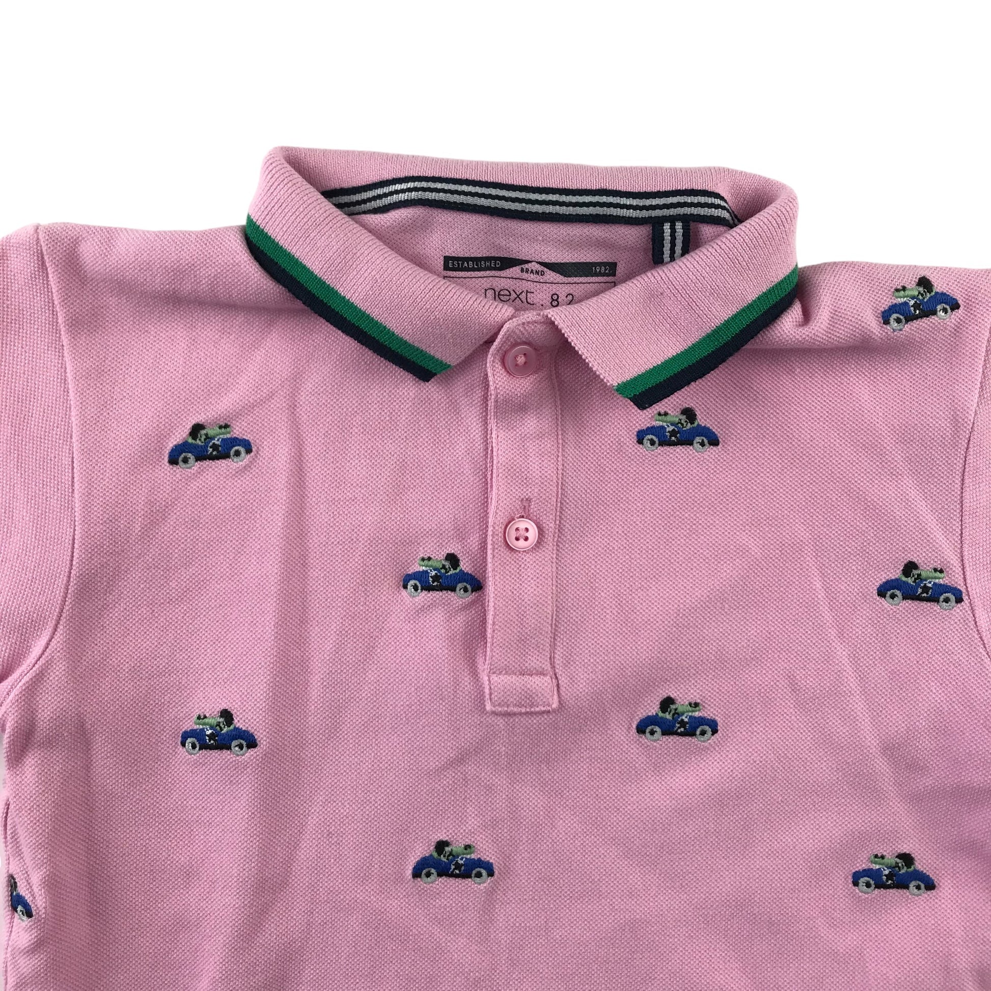 Next Polo Shirt Age 4 Pink Embroidered Car Print Cotton