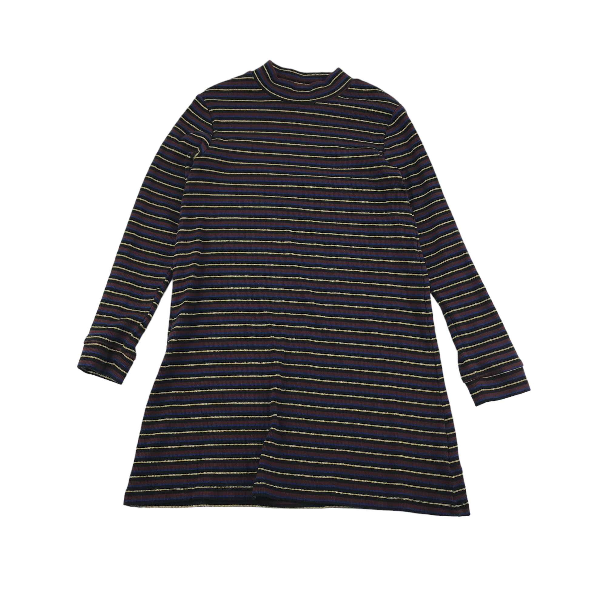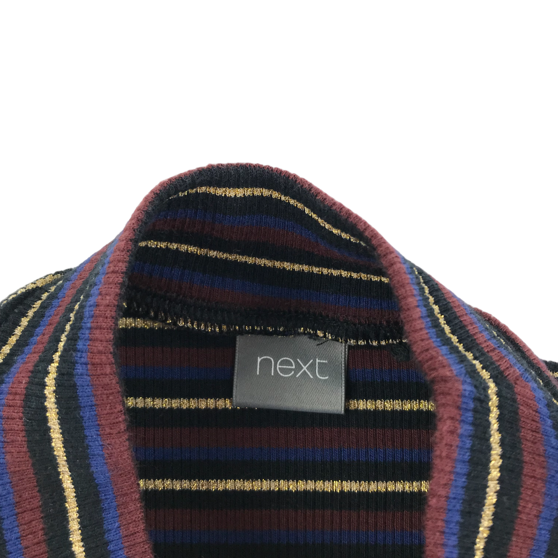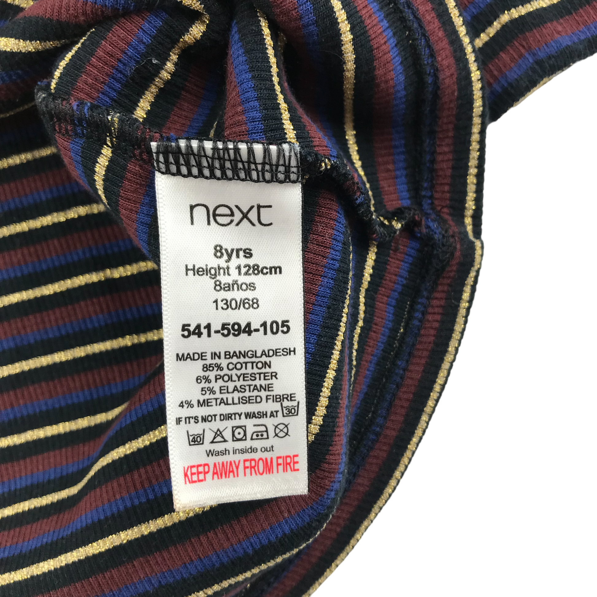 Next Dress Age 8 Burgundy Knitted Golden Stripy