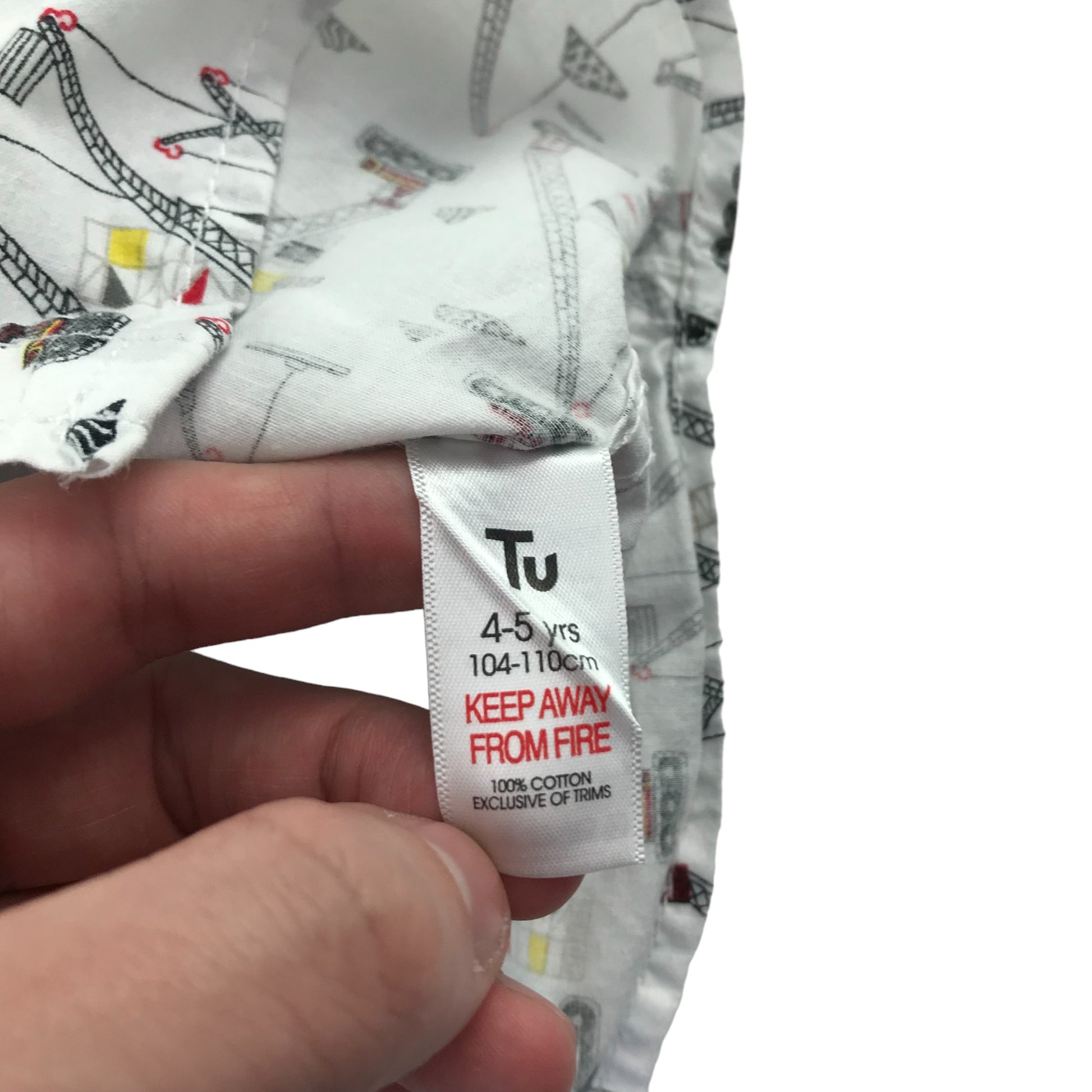 Tu Shirt Age 4 White Crane Construction Print Short Sleeve Button Up Cotton