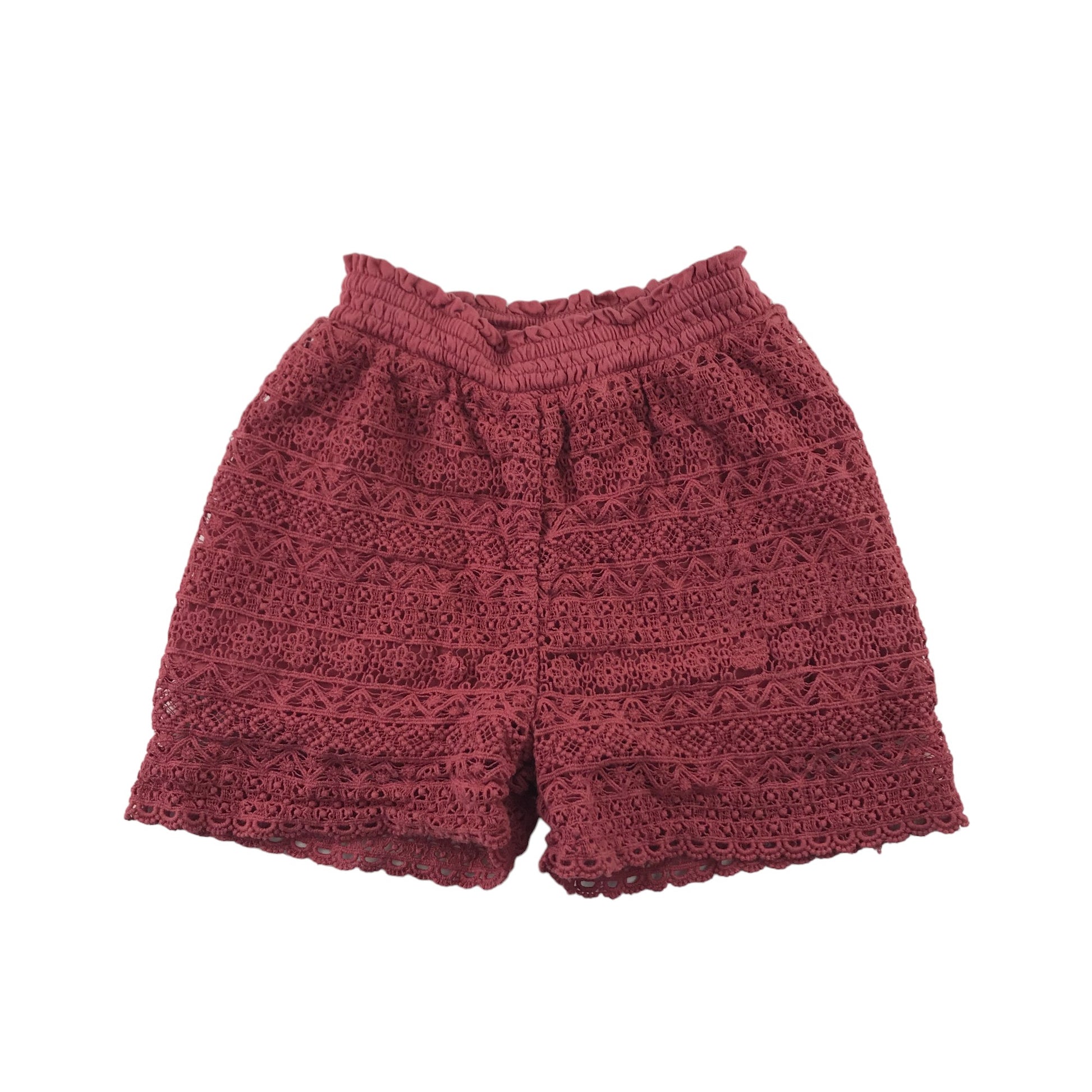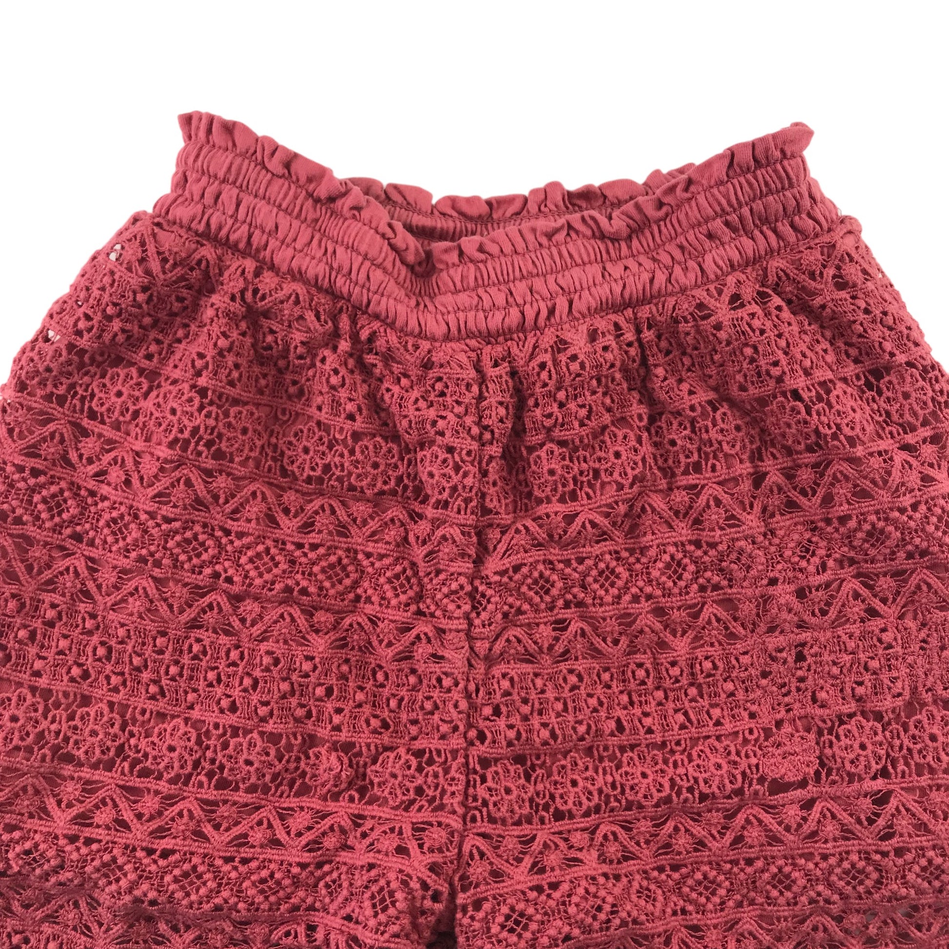M&S Shorts Age 8 Burnt Red Plain Lace Pattern Cotton