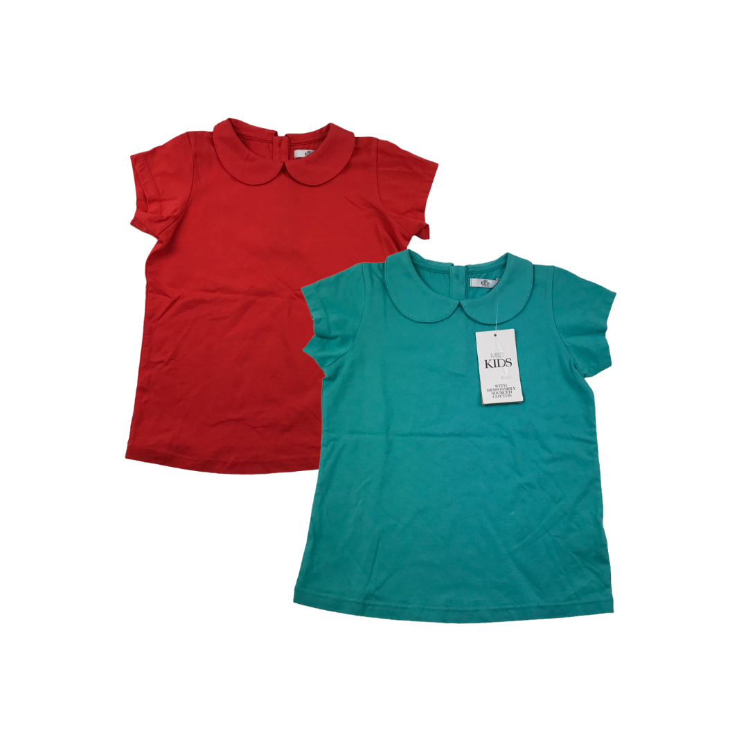 M&S Blue and Red Collared Cotton T-shirt Set Age 6