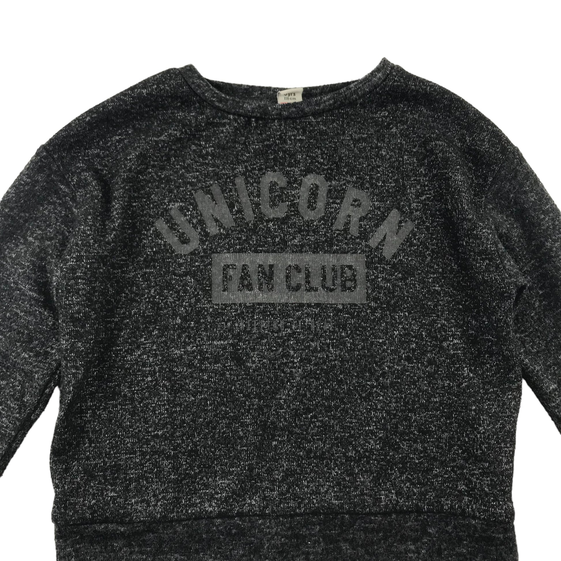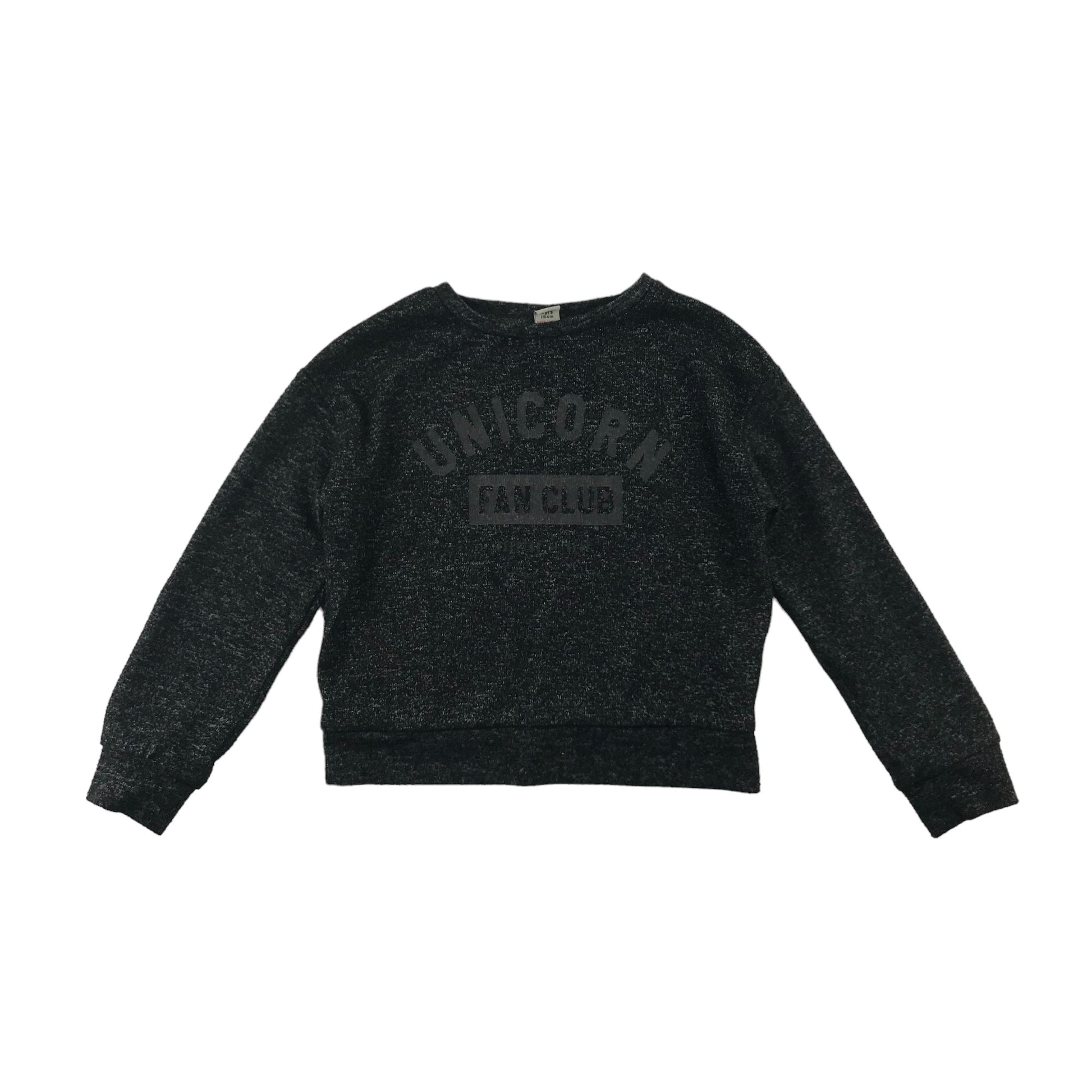 Tu Jumper Age 6 Charcoal Grey Cropped Unicorn Text Graphic