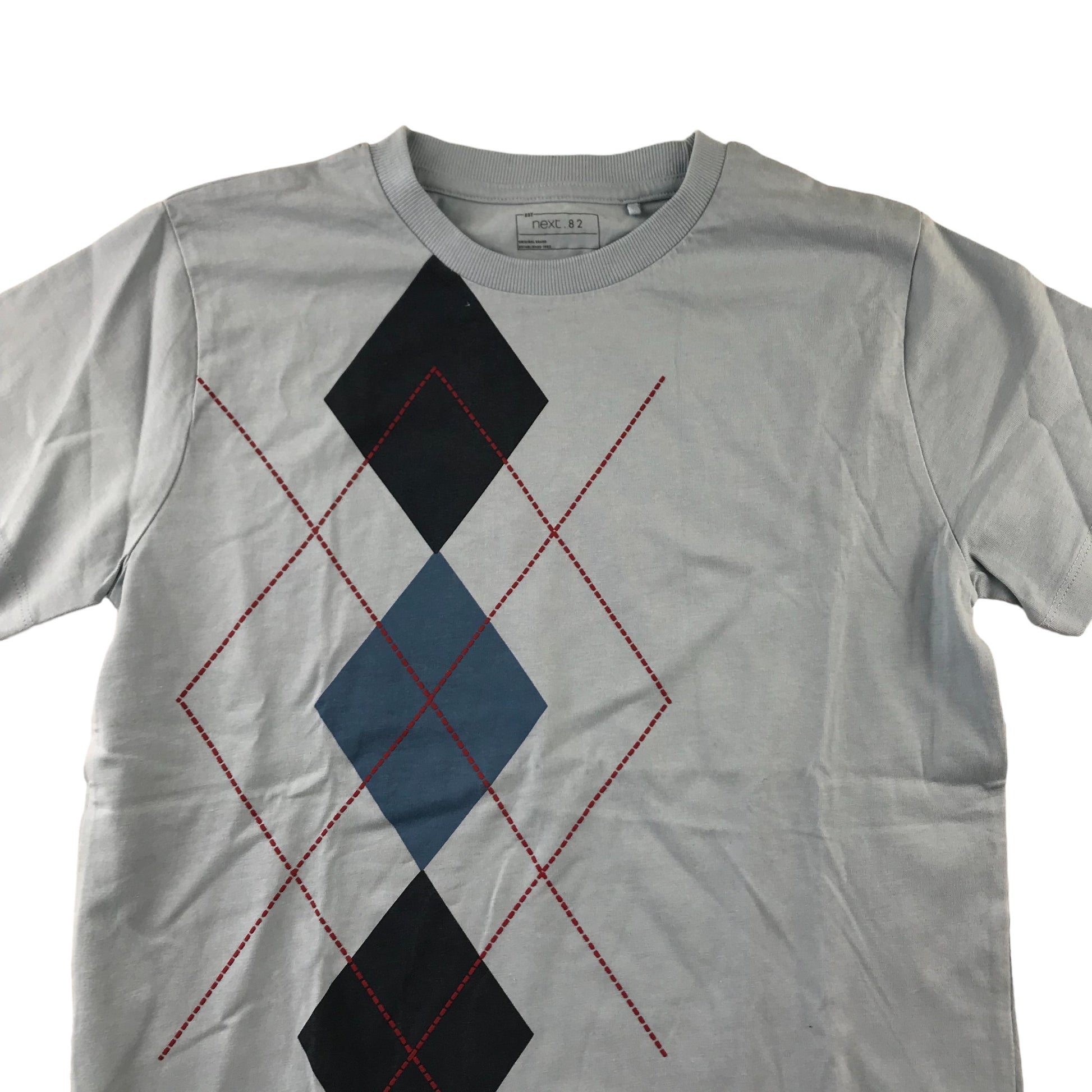 Preloved second hand Next T-shirt Age 11 Light Blue Diamond Pattern