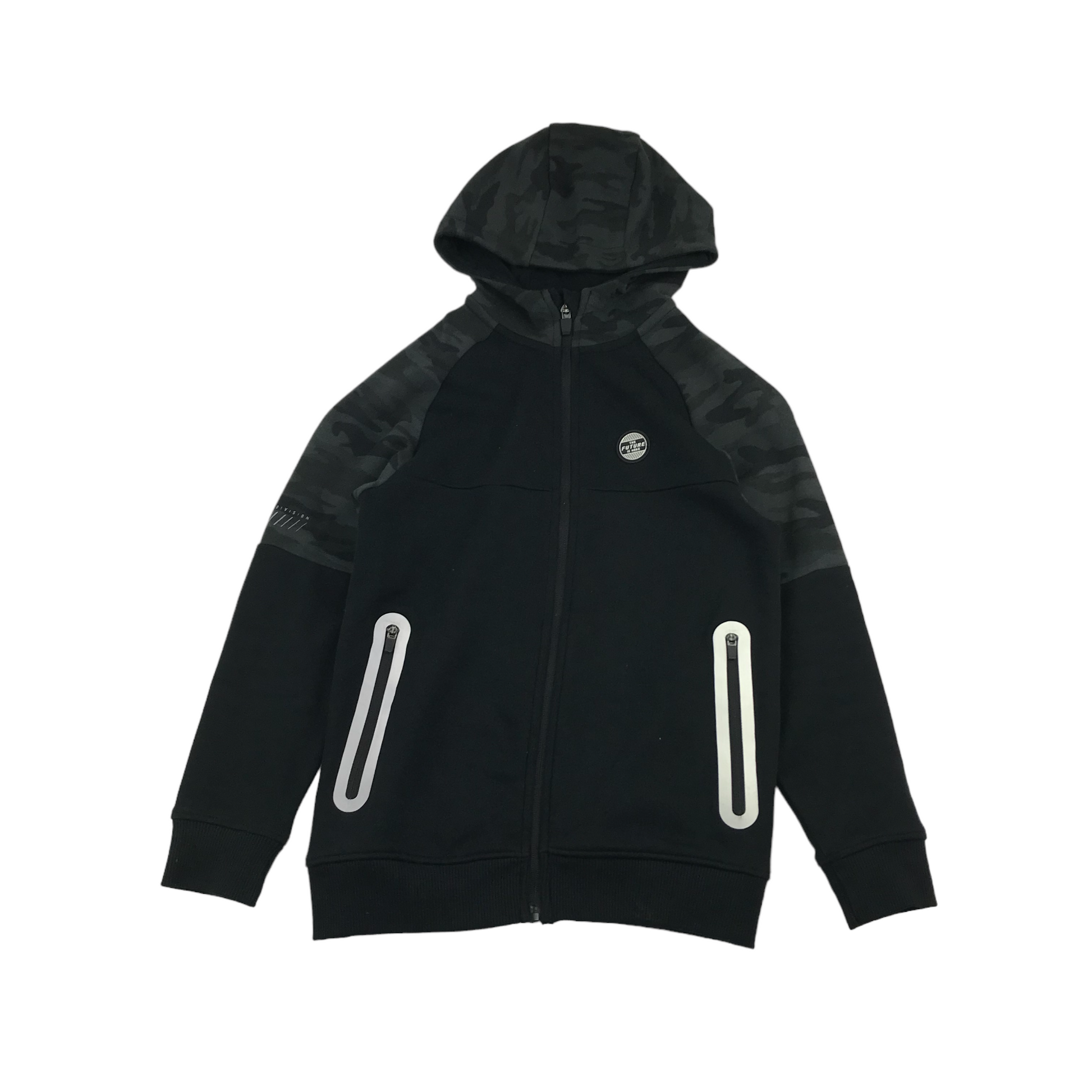 Preloved second hand George Hoodie Age 9 Black Panelled Camo
