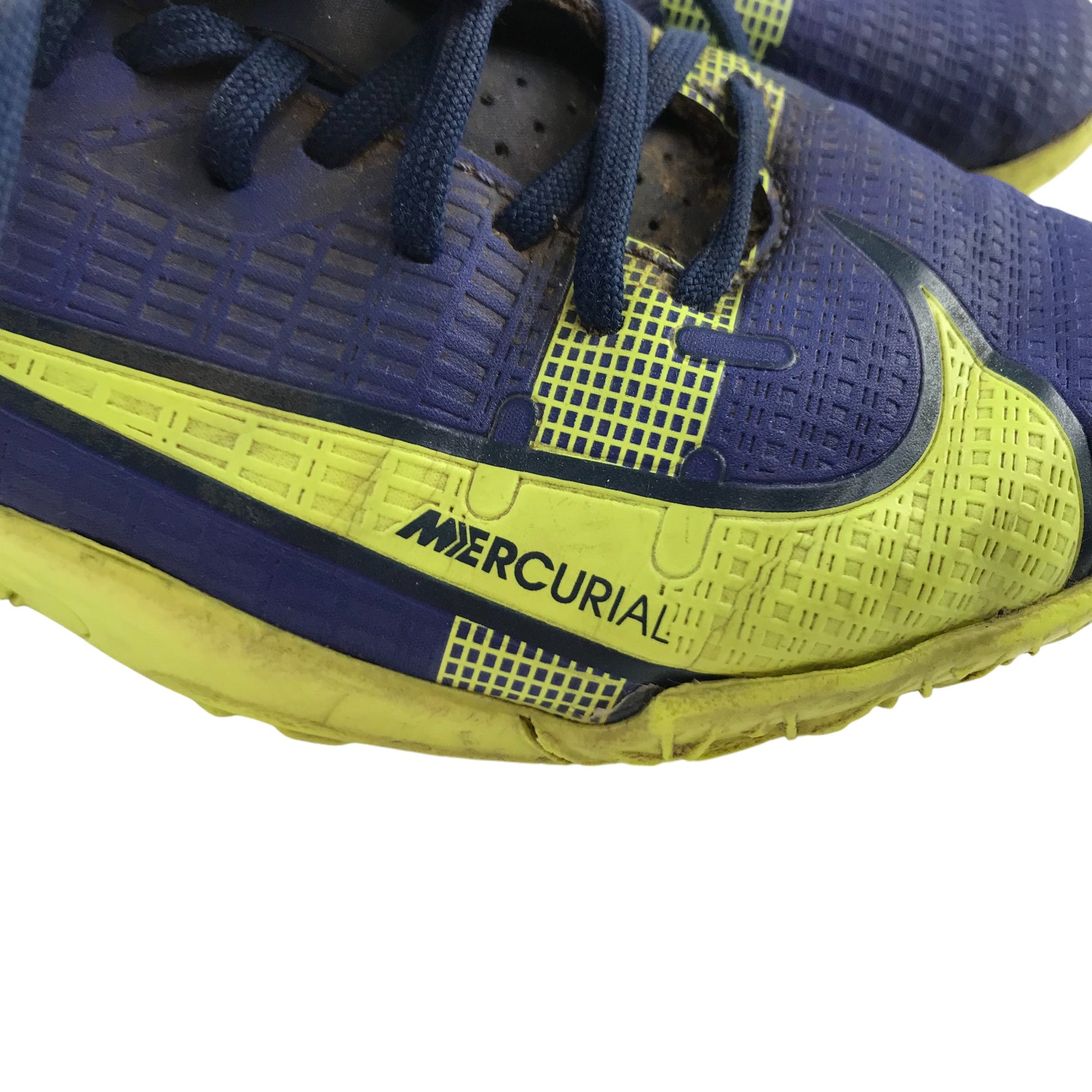 Preloved second hand Nike Mercurial Astro Turf Football Boot Shoe Size 1 Blue and Yellow
