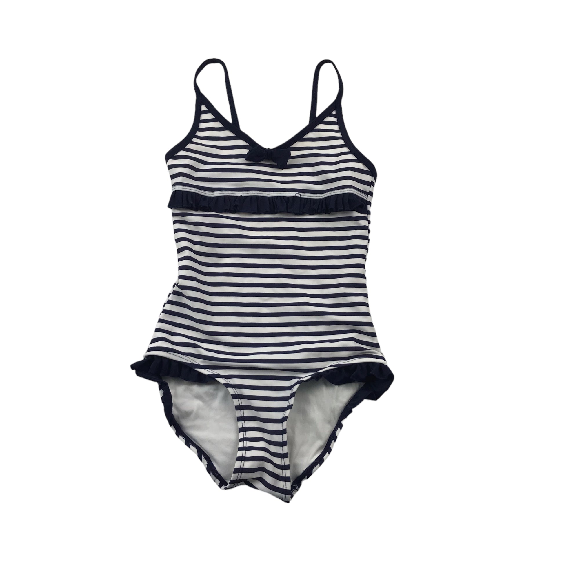 Preloved second hand H&M White and Navy Stripy Swim Costume Age 5