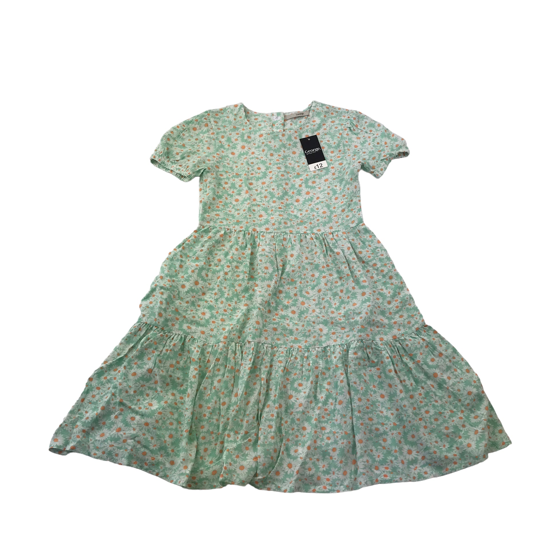 Preloved second hand George Light Green Floral Viscose Dress Age 8