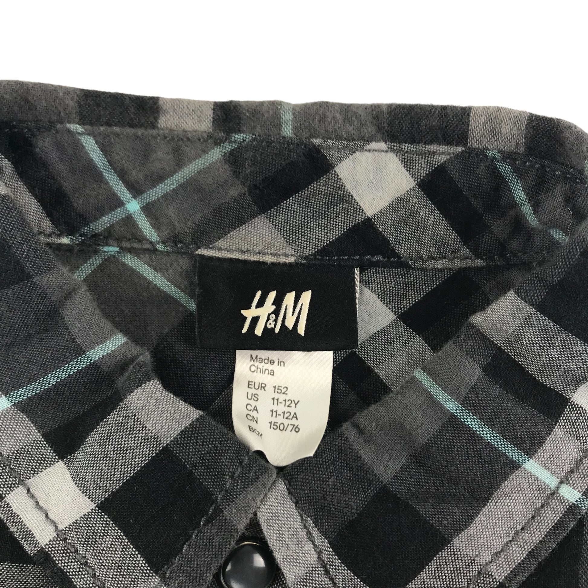Preloved second-hand H&M Shirt Age 11 Grey Check Button Down Cotton