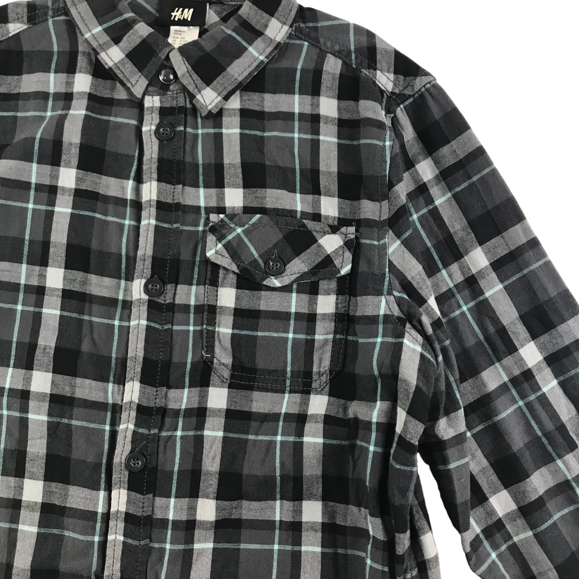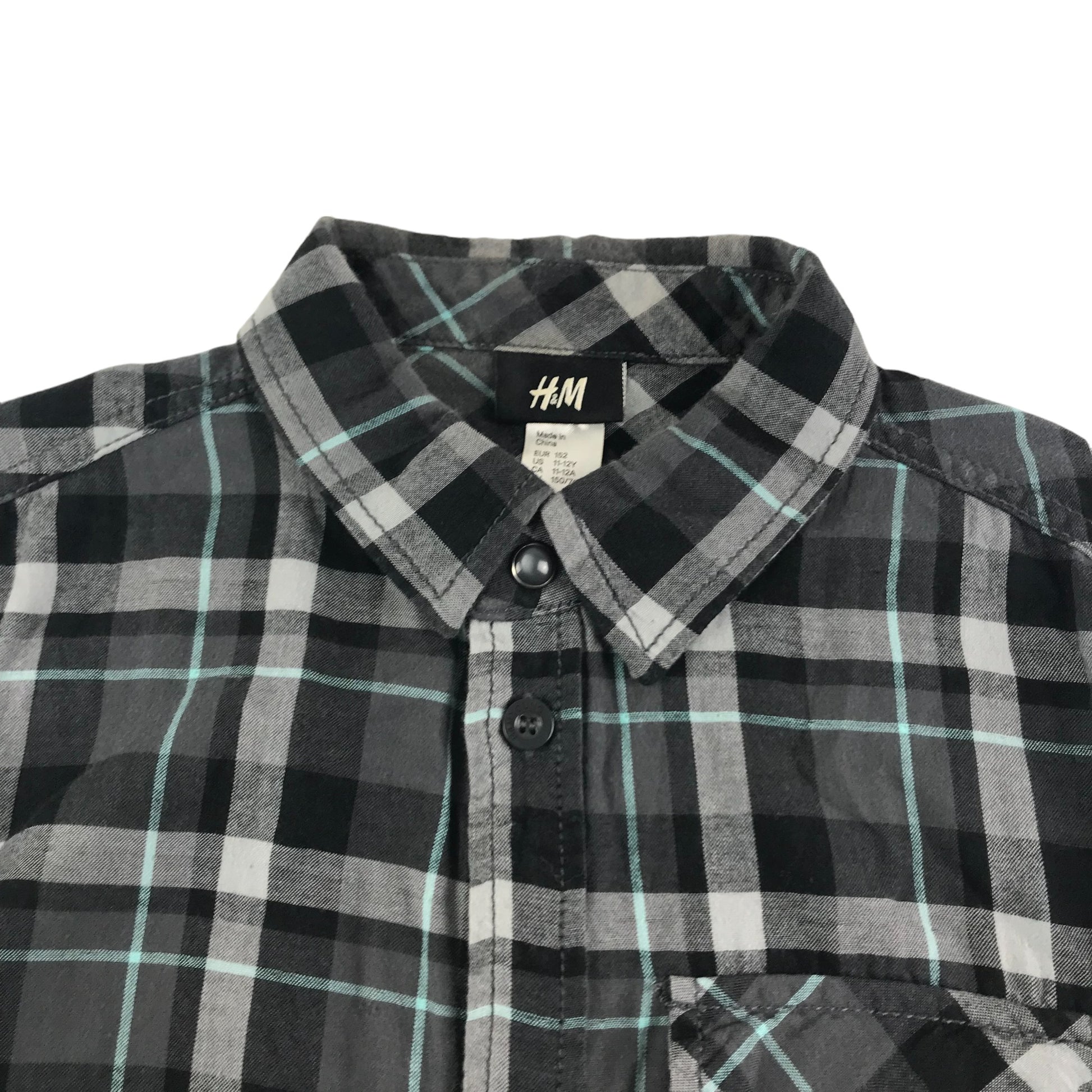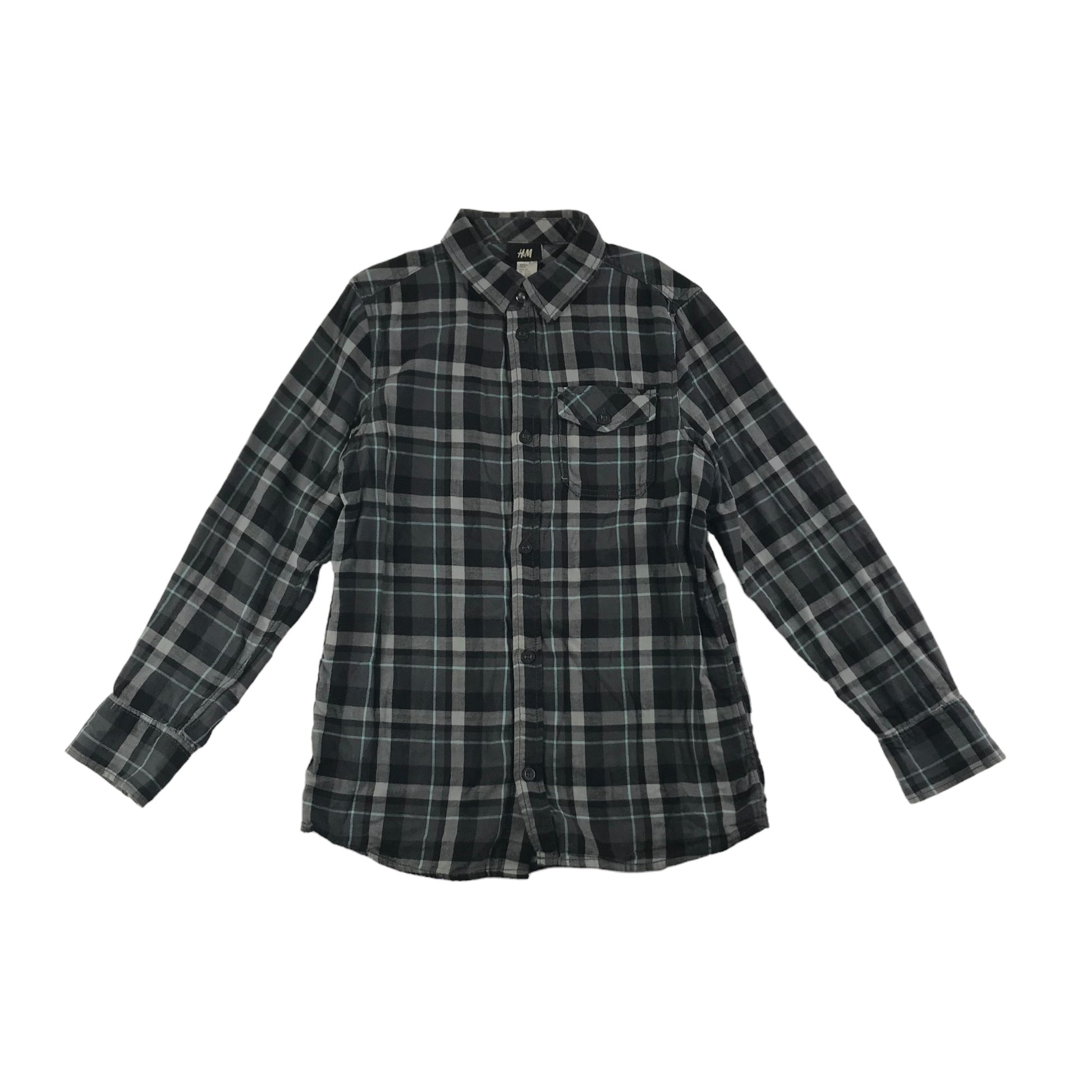 H&M Shirt Age 11 Grey Check Button Up Cotton