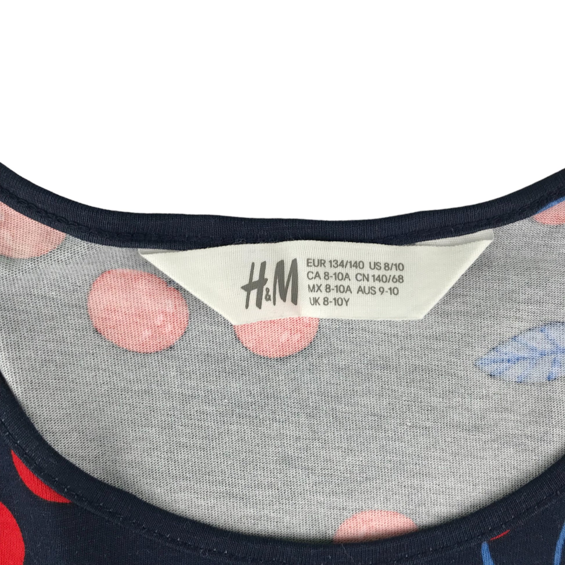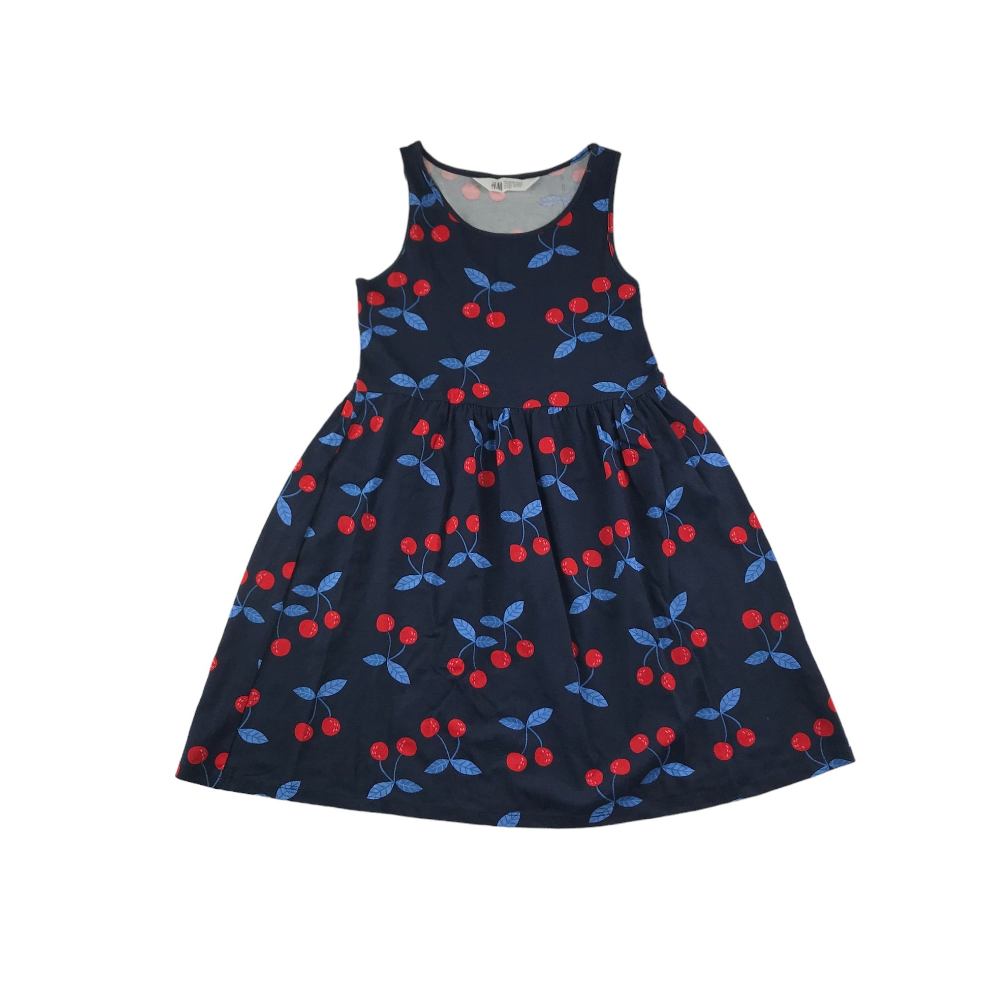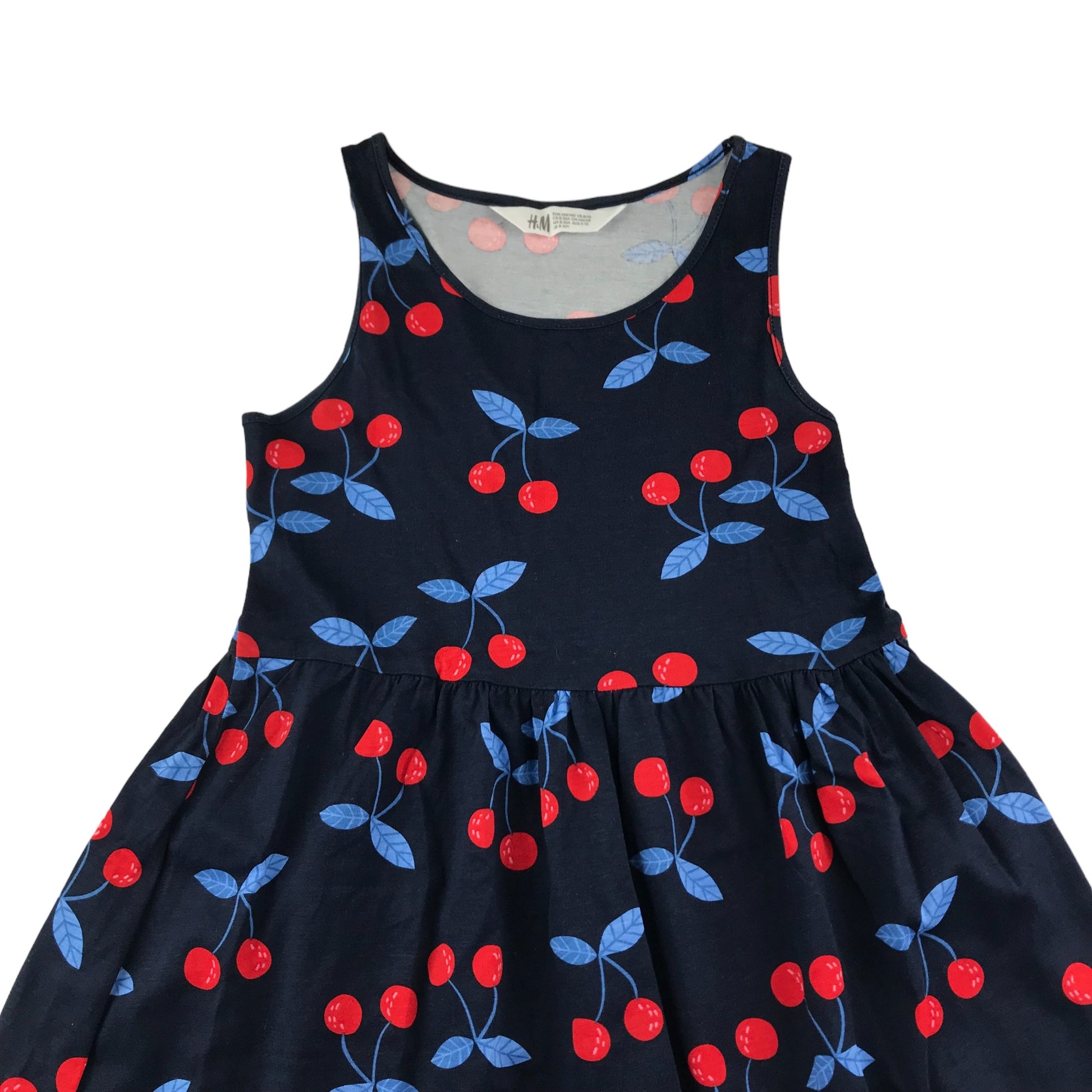 H&M Dress Age 8-10 Navy Cherry Print Cotton