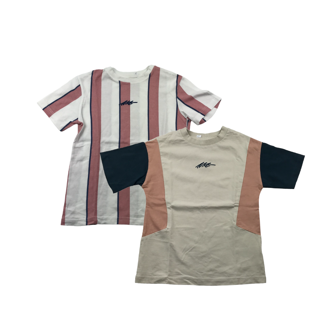 - Description: 2 t-shirts, a stripy one and panelled one, both 100% cotton and by Next