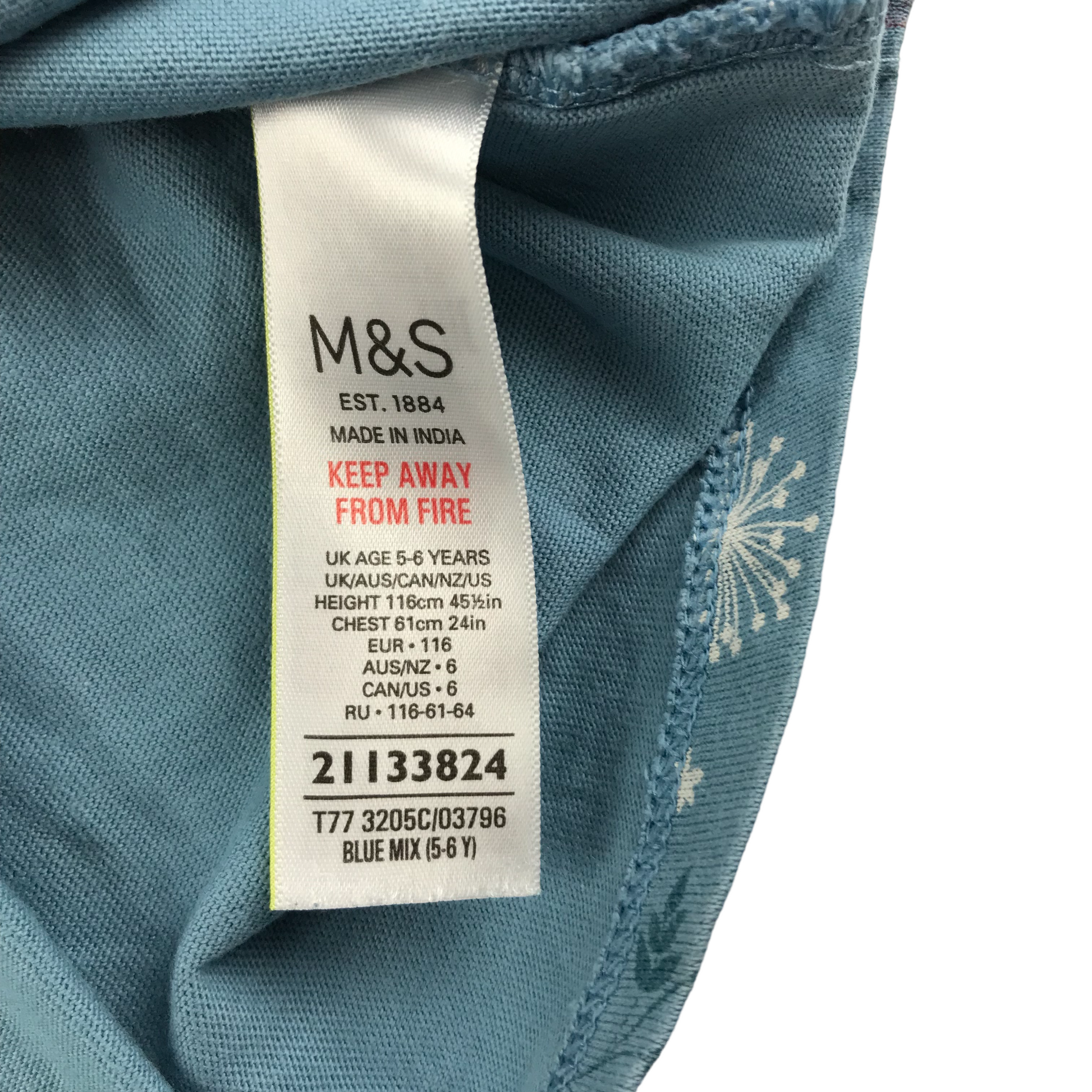 M&S Elsa Dress Age 5 Blue Else and Snowflake Print