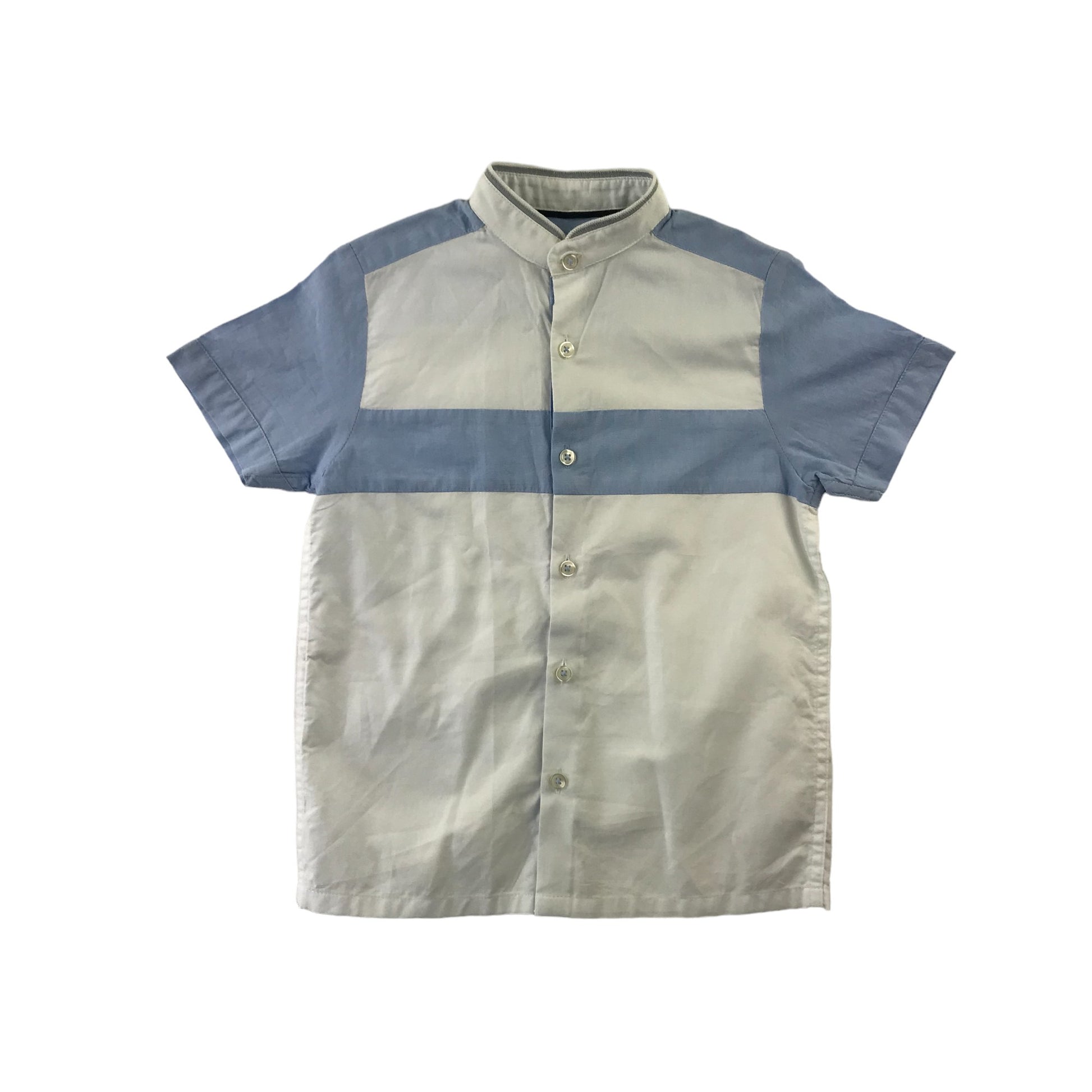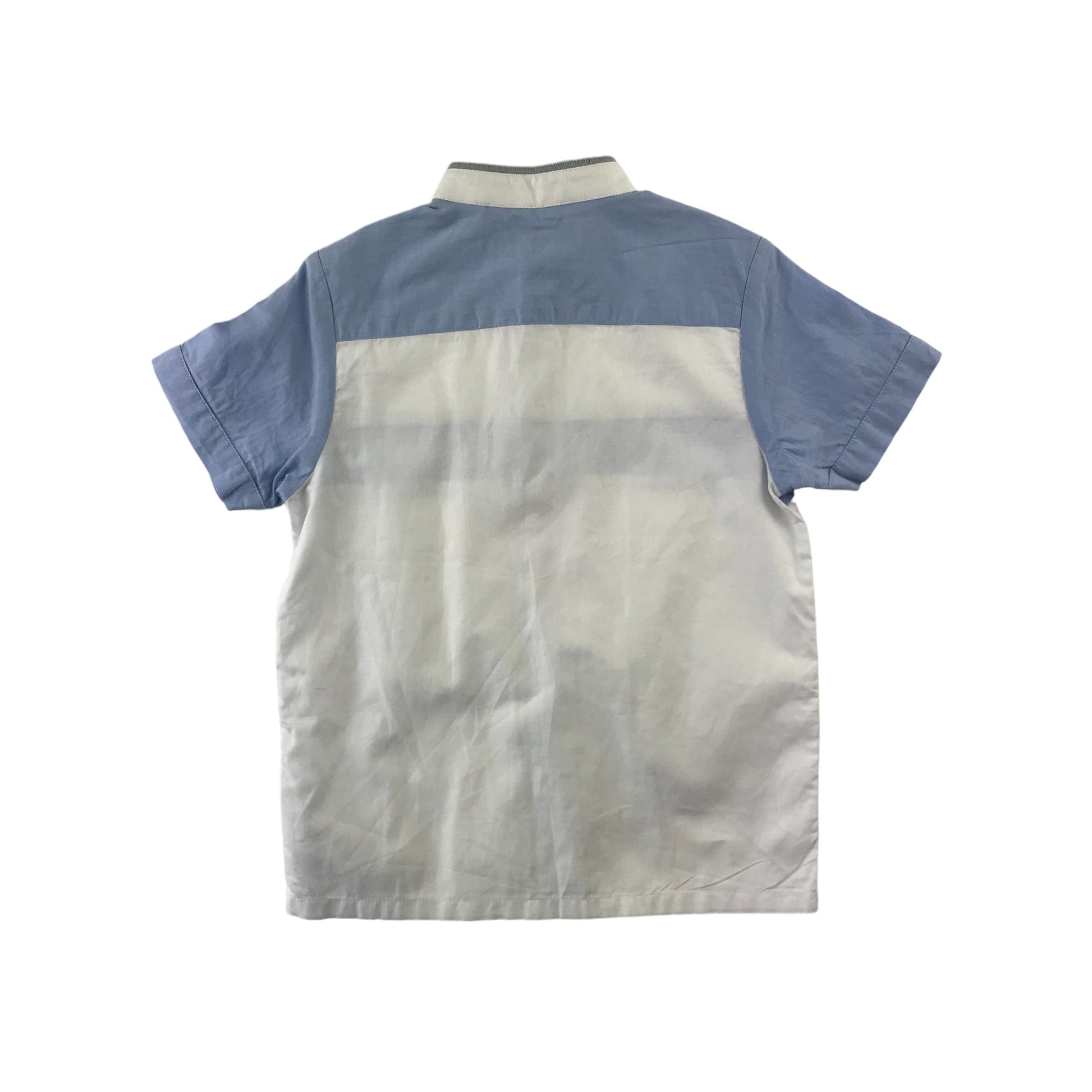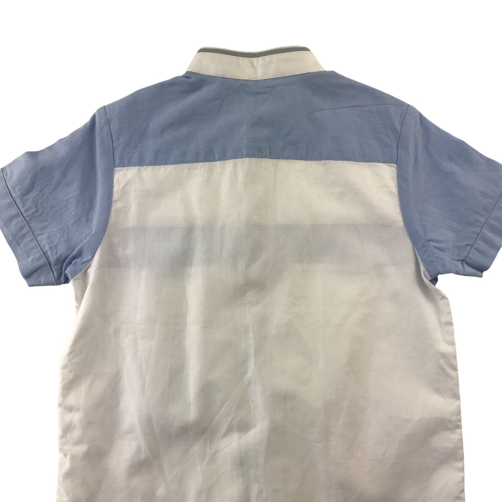 Next Shirt Age 5 White with Blue Sleeves Stripe Across Chest Short Sleeve Button Up Cotton